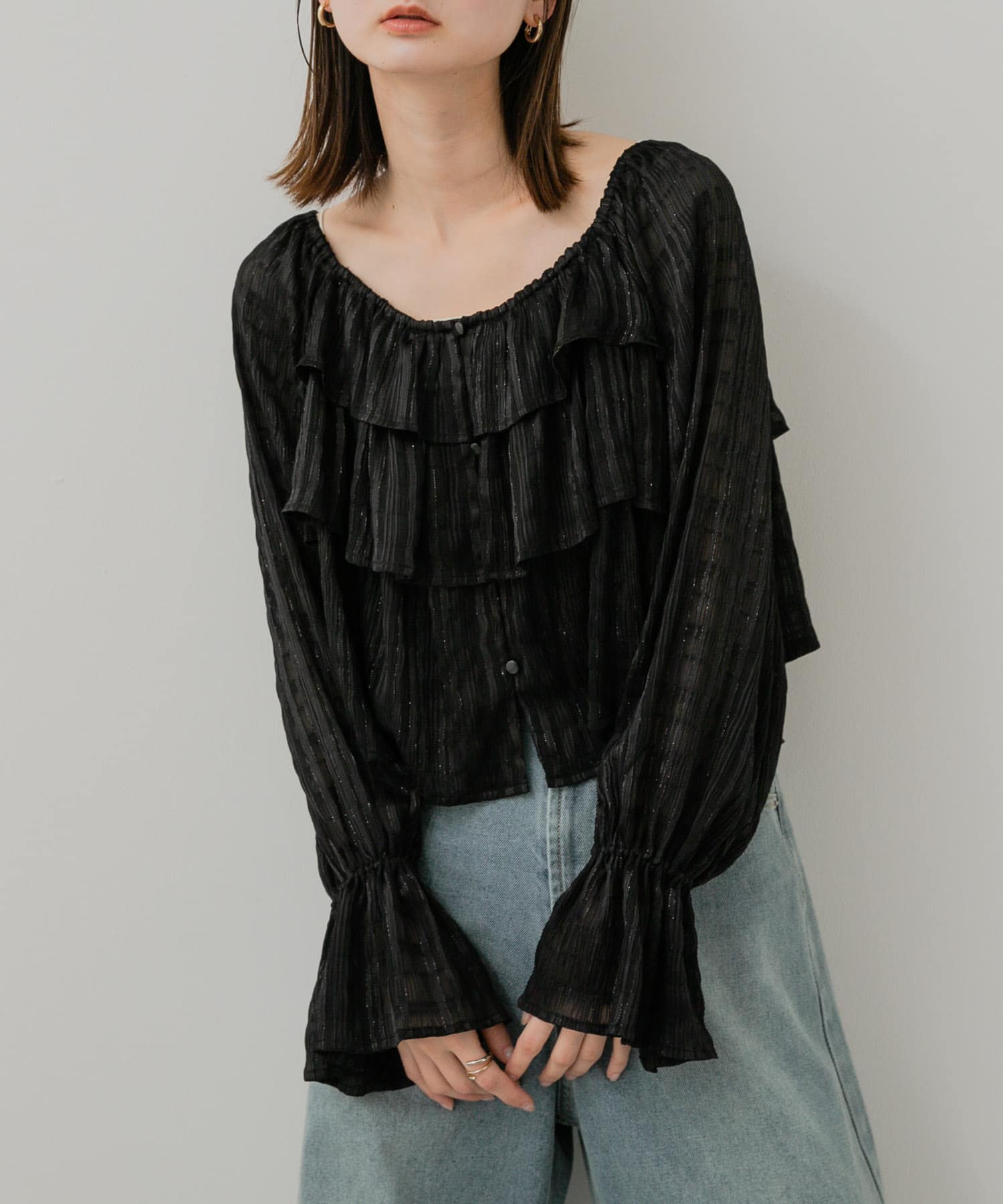 SENSE OF PLACEクロップドフリルブラウス- カラー: