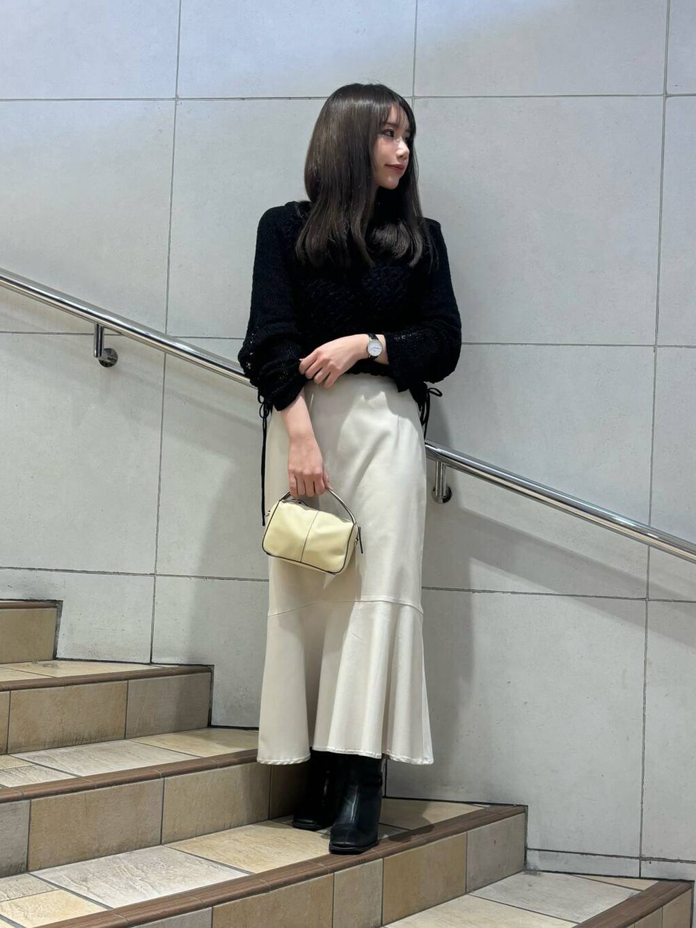 ニットはサイドがリボンになっていてフェミニンな印象に◯
