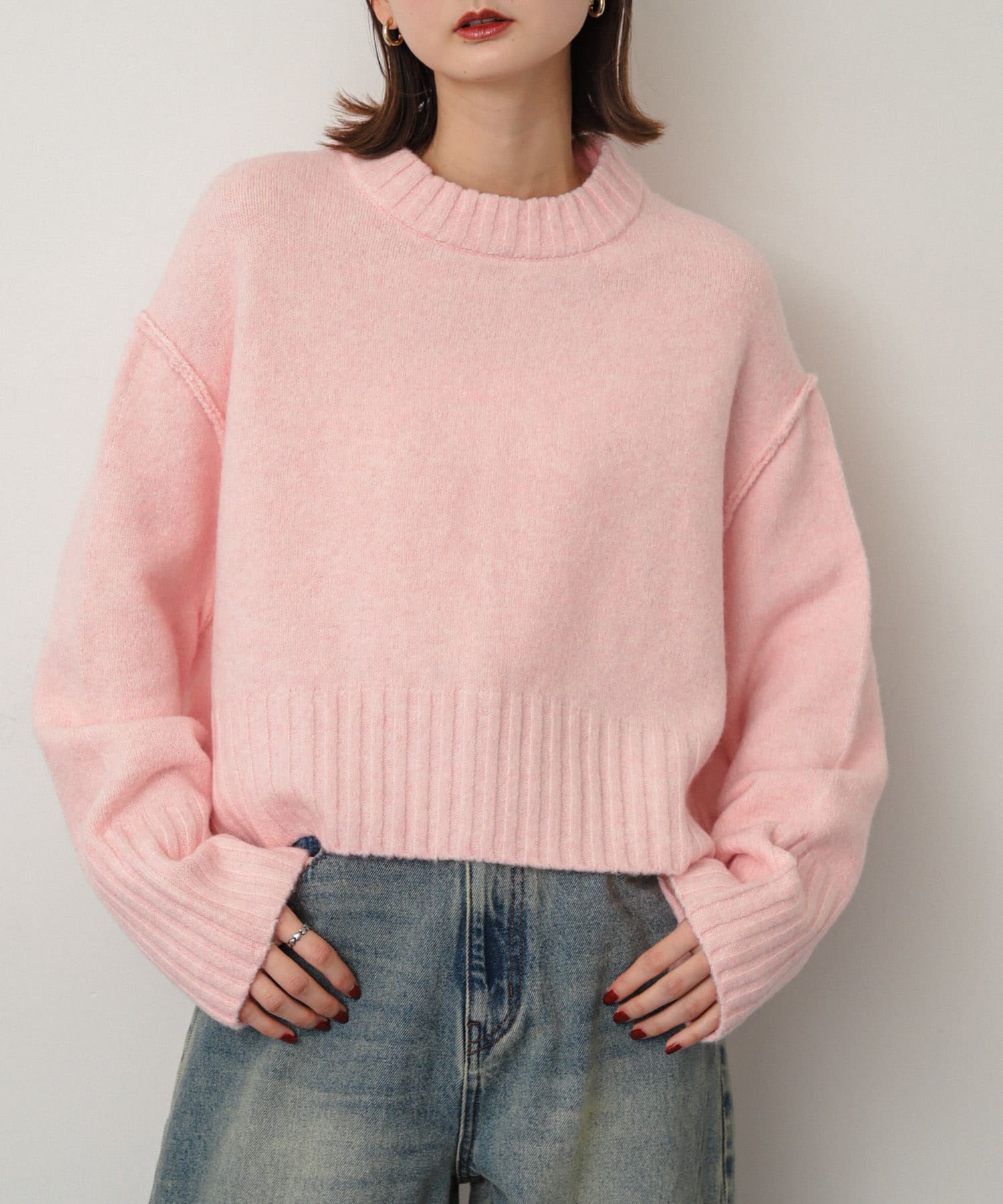 ワイドリブクルーネックセーター