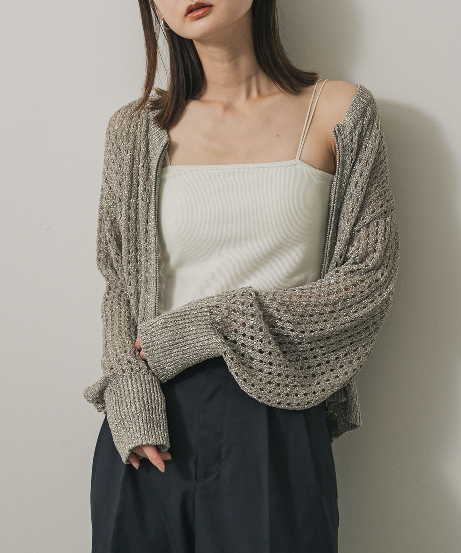 SENSE OF PLACE『一部WEB限定カラー』クルーネックラメメッシュカーディガン- 着用カラー: