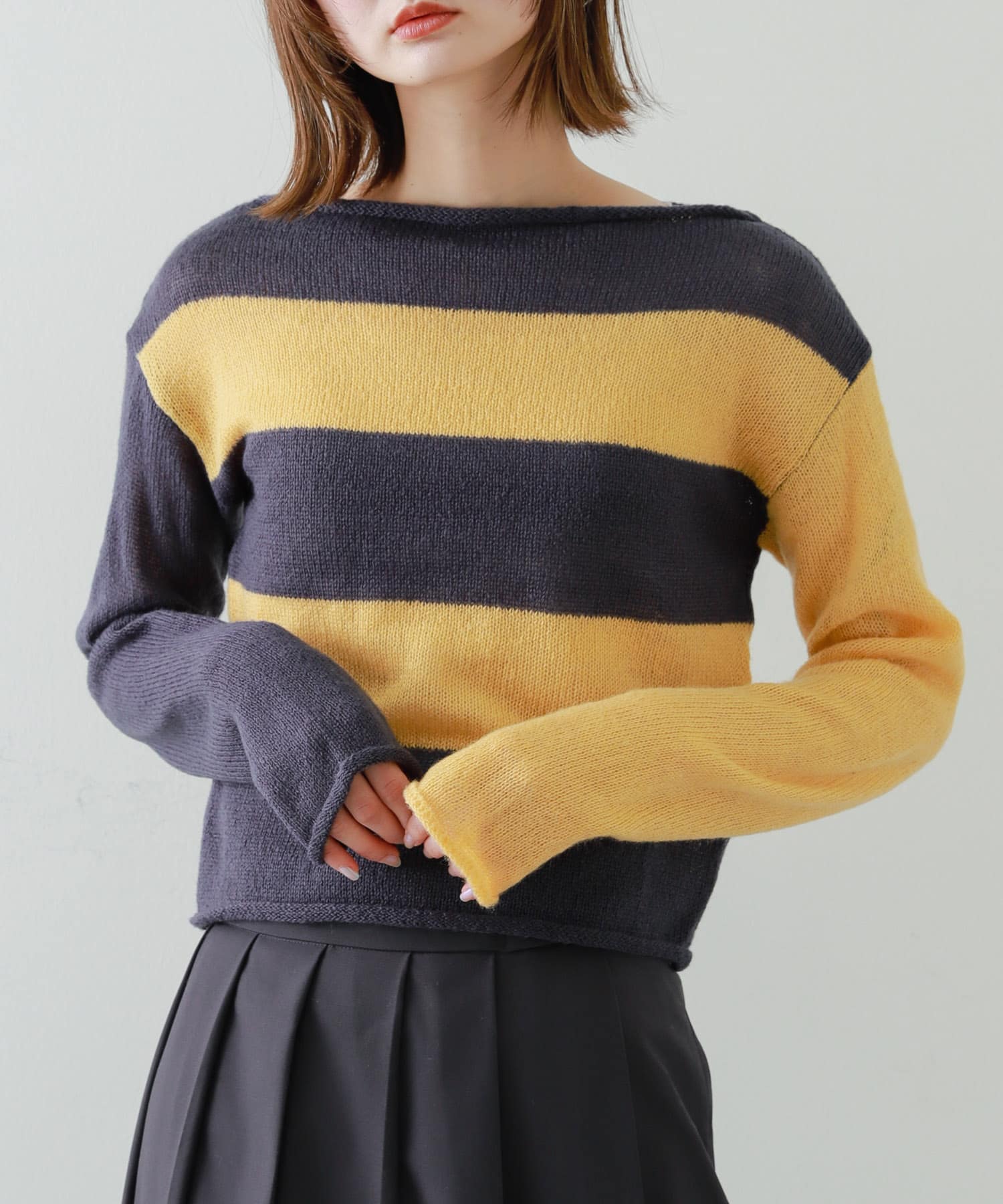 SENSE OF PLACE『別注』さらさ×SENSE OF PLACE モヘアライクワイドボーダーセーター- 着用カラー:
