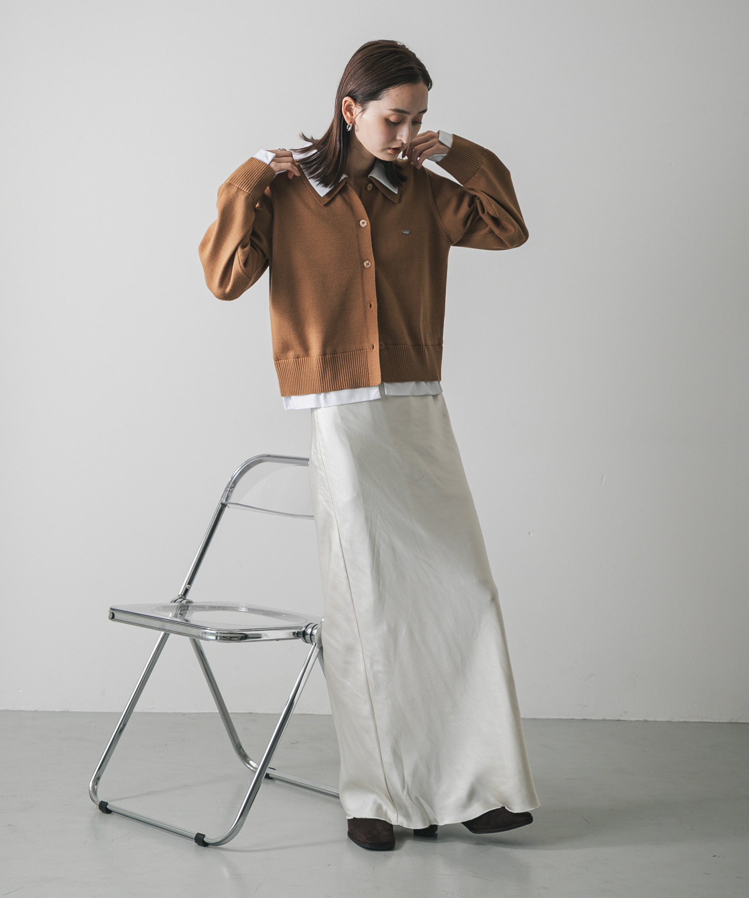 シャツがドッキングされたカーディガンは店頭でも大人気!