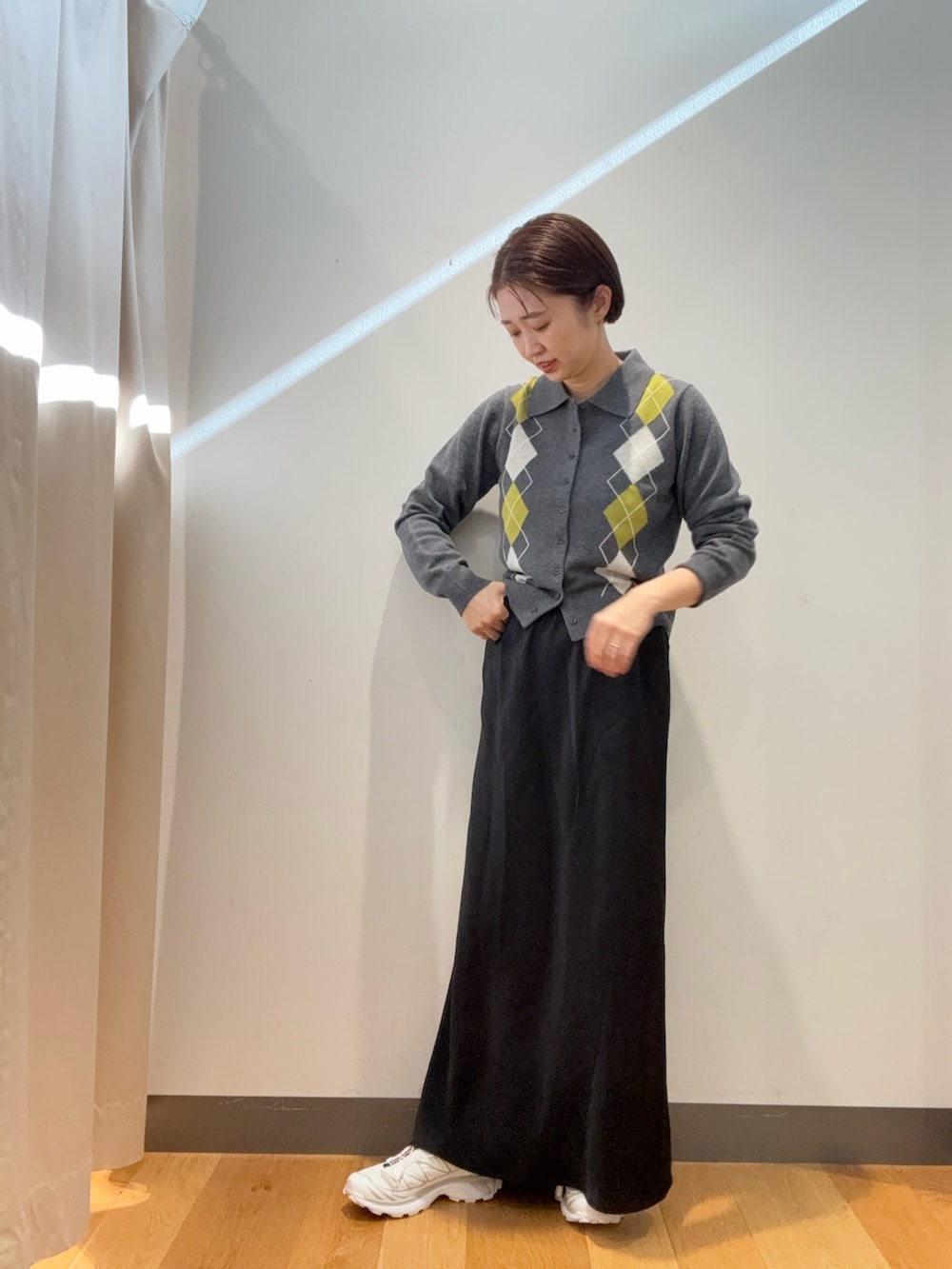 中のニットはシンプルなシルエットながらも、襟があって、アーガイル柄とカラーリングが大人かわいくてお勧めです^_^
