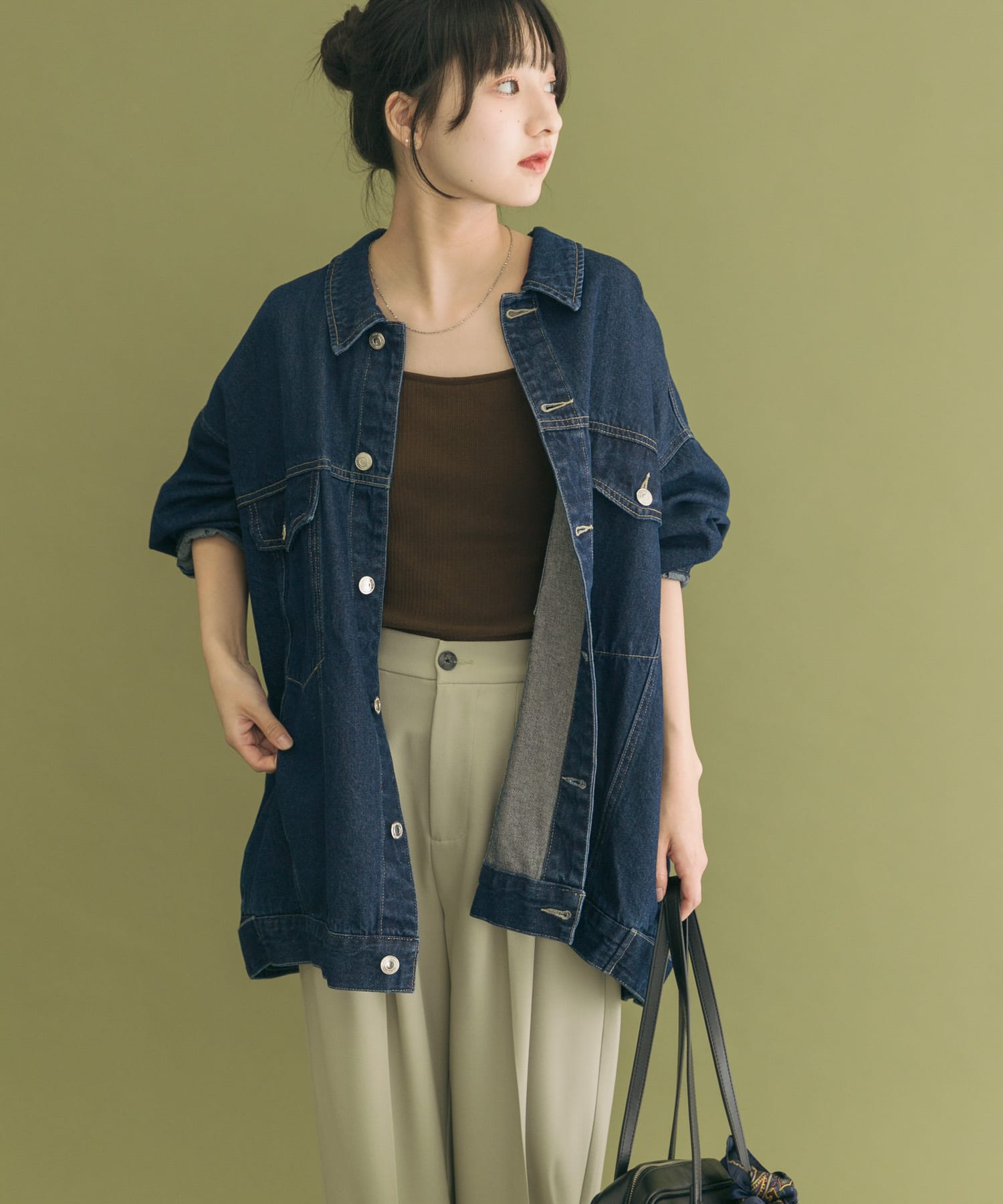 このパンツはラメが入っているので少し女性らしさを加えてくれるので着やすいです✨