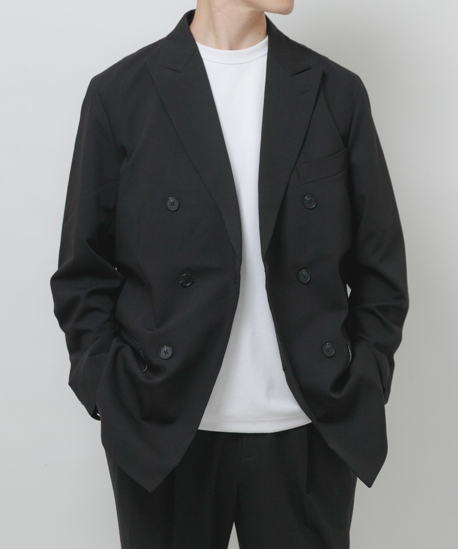 ジャケットはウールギャバを使用しており、高級感のある表情感になっているのでとてもオススメです!