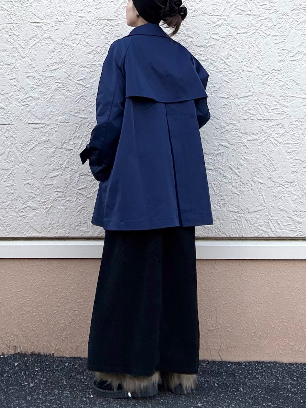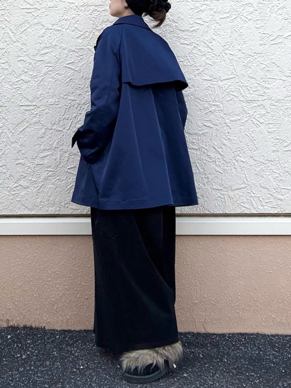ミドル丈のお洒落なネイビーカラーのトレンチコート!