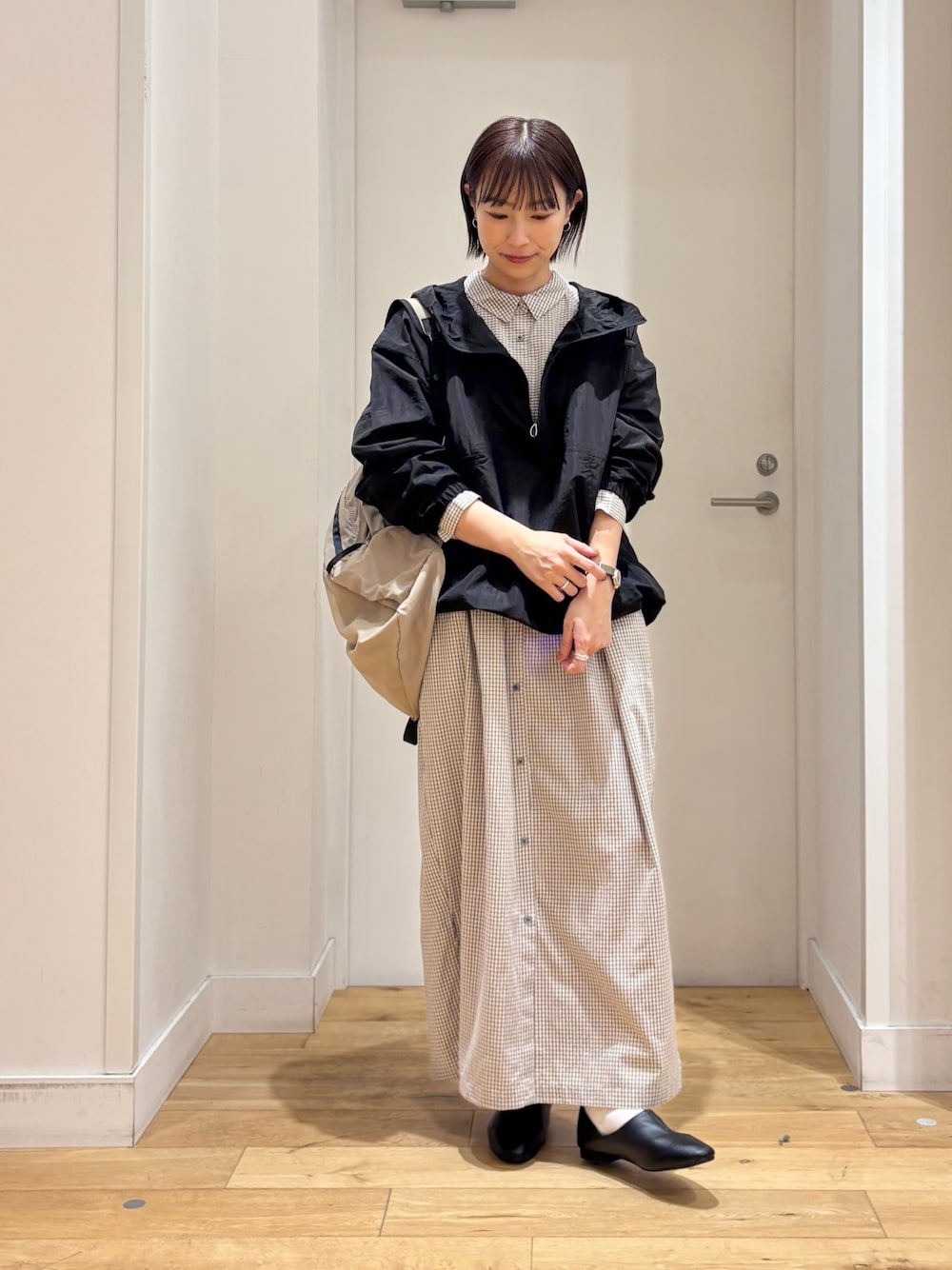 薄手のアウターとの合わせで今の季節にぴったりなコーデとなっております。