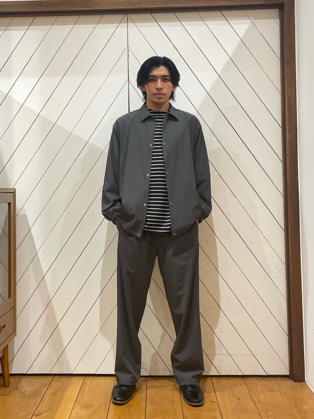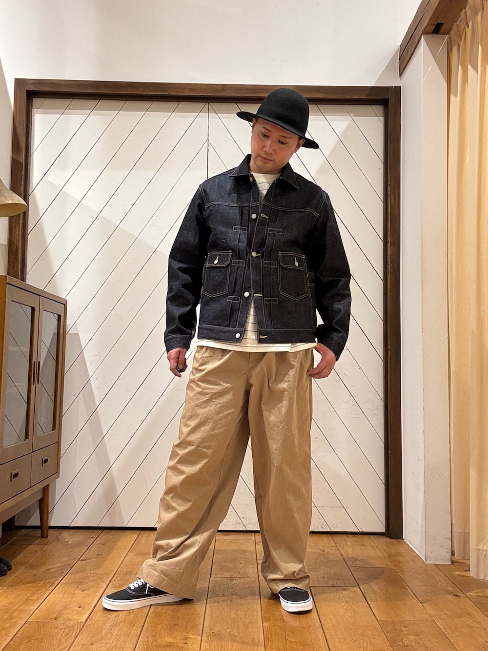 デニムバンドカラーシャツでゆったりとコーディネートしました!