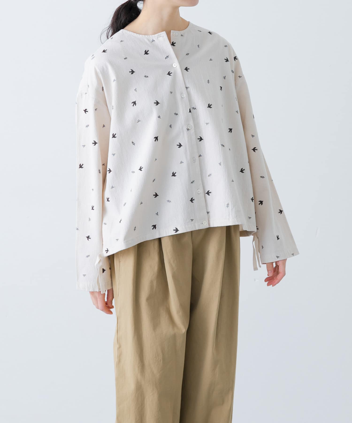 ツバメ刺繍ブラウス