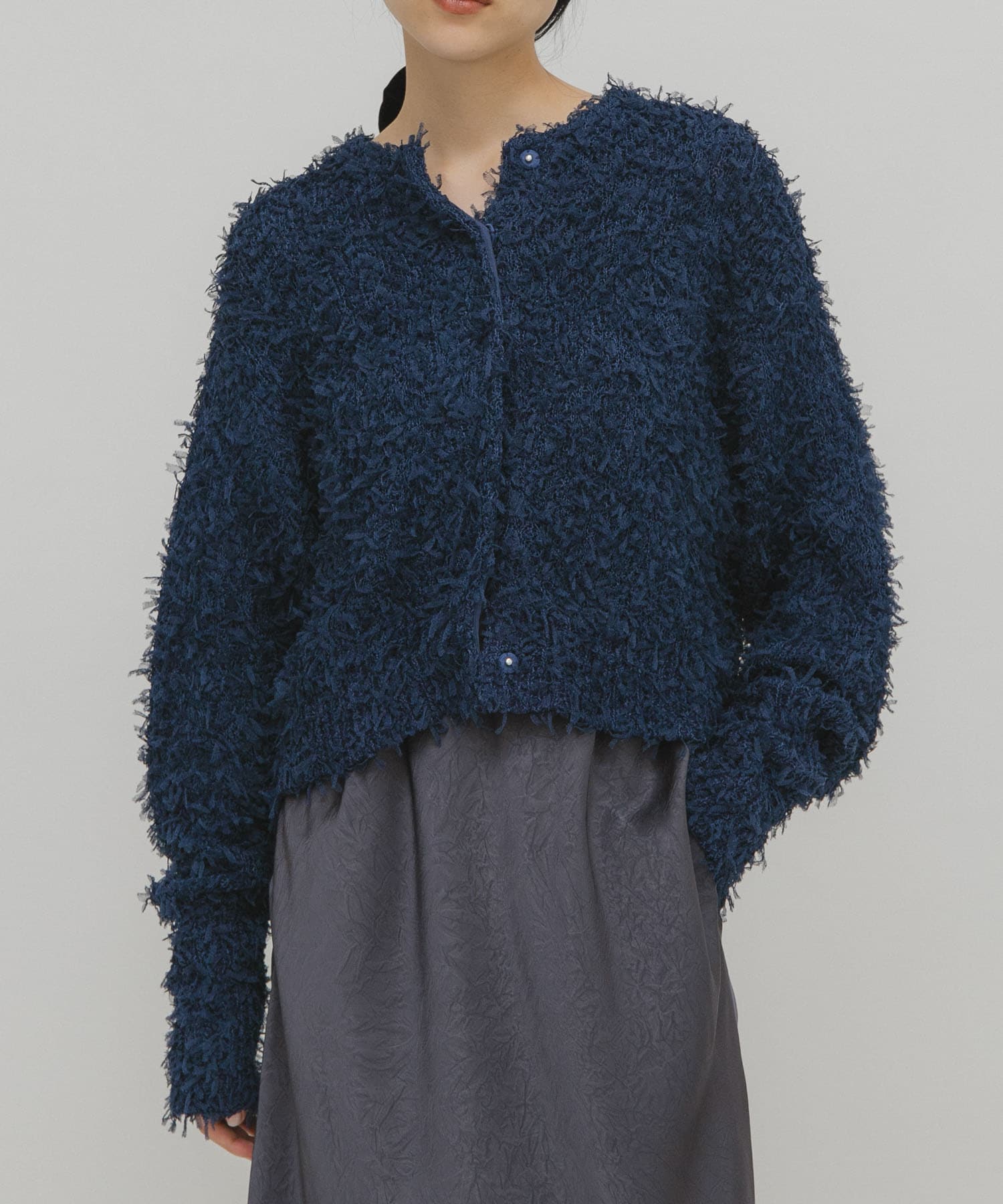一見ボリューミーなカーディガンですが、コンパクトな丈感なので、長めのボトムスやカーディガンと合わせるとスッキリ着用頂けます🫶
