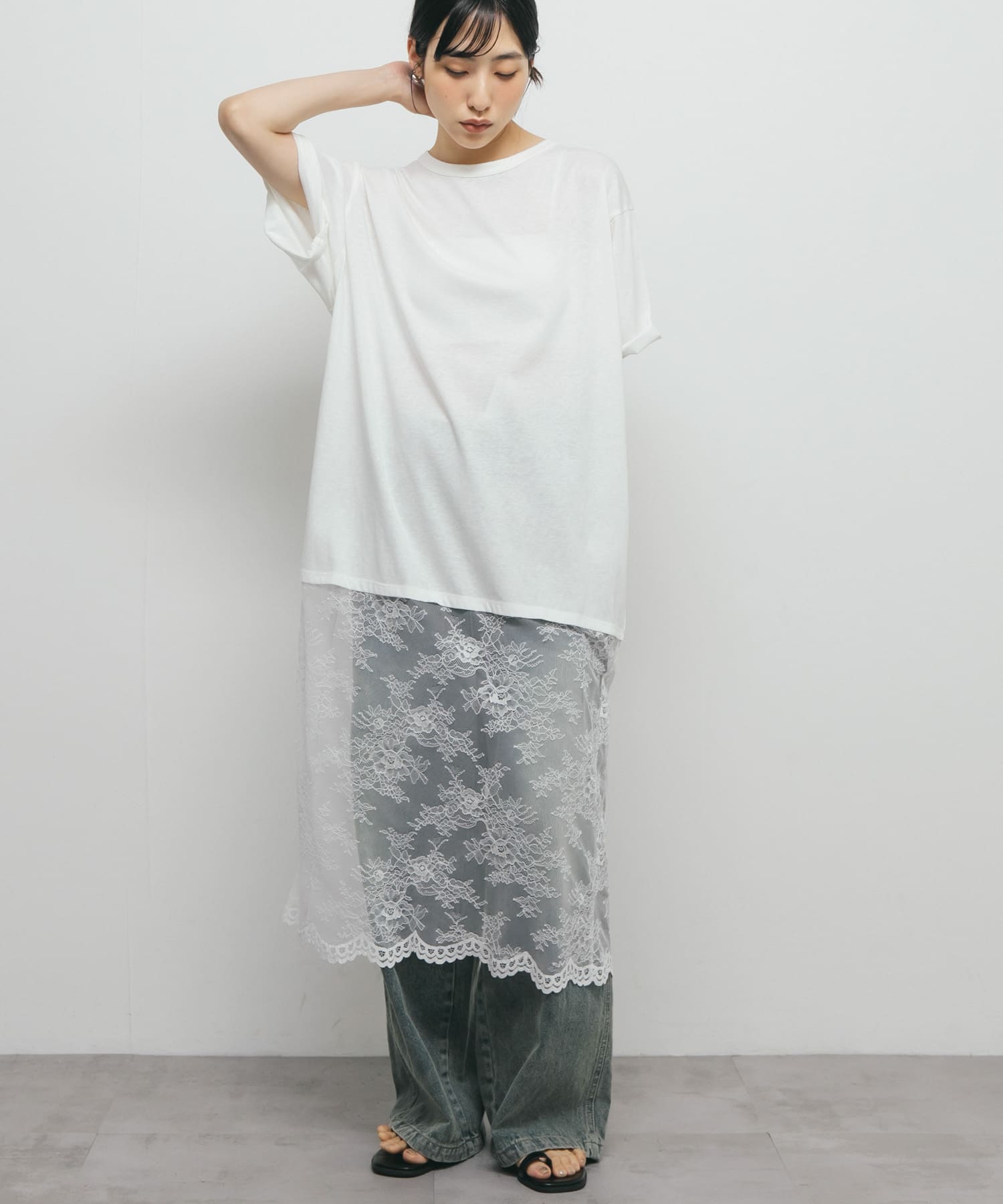 ワンピースは裾部分がレース生地になっているのでパンツなどとレイヤードして着るのがおすすめです!