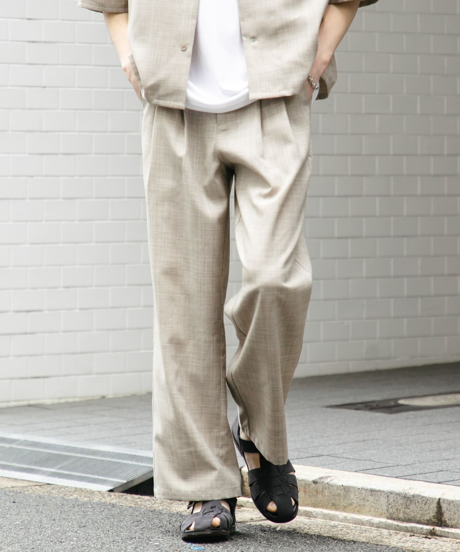 SENSE OF PLACE『セットアップ対応』『接触冷感/吸水速乾/イージーケア』リネンライクワイドスラックス- カラー: