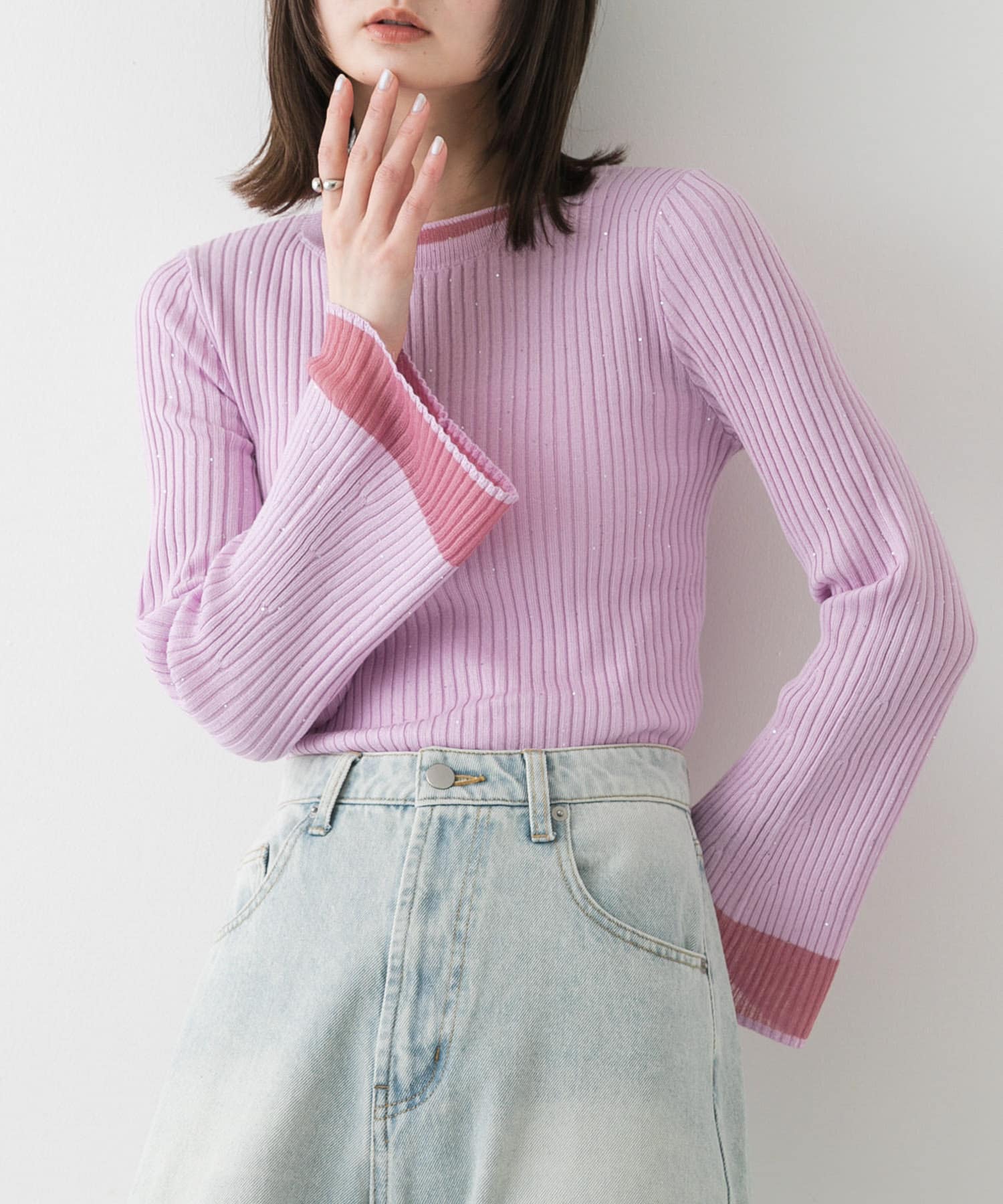 『洗濯可』スパンコールバイカラーコンパクトセーター