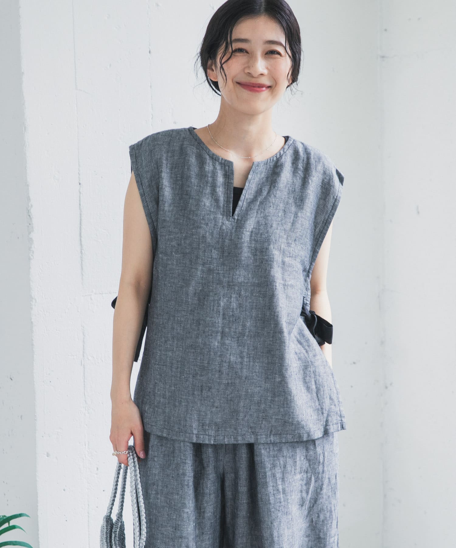 リネン100%素材で、着ているのを忘れるくらい軽い着心地🌿