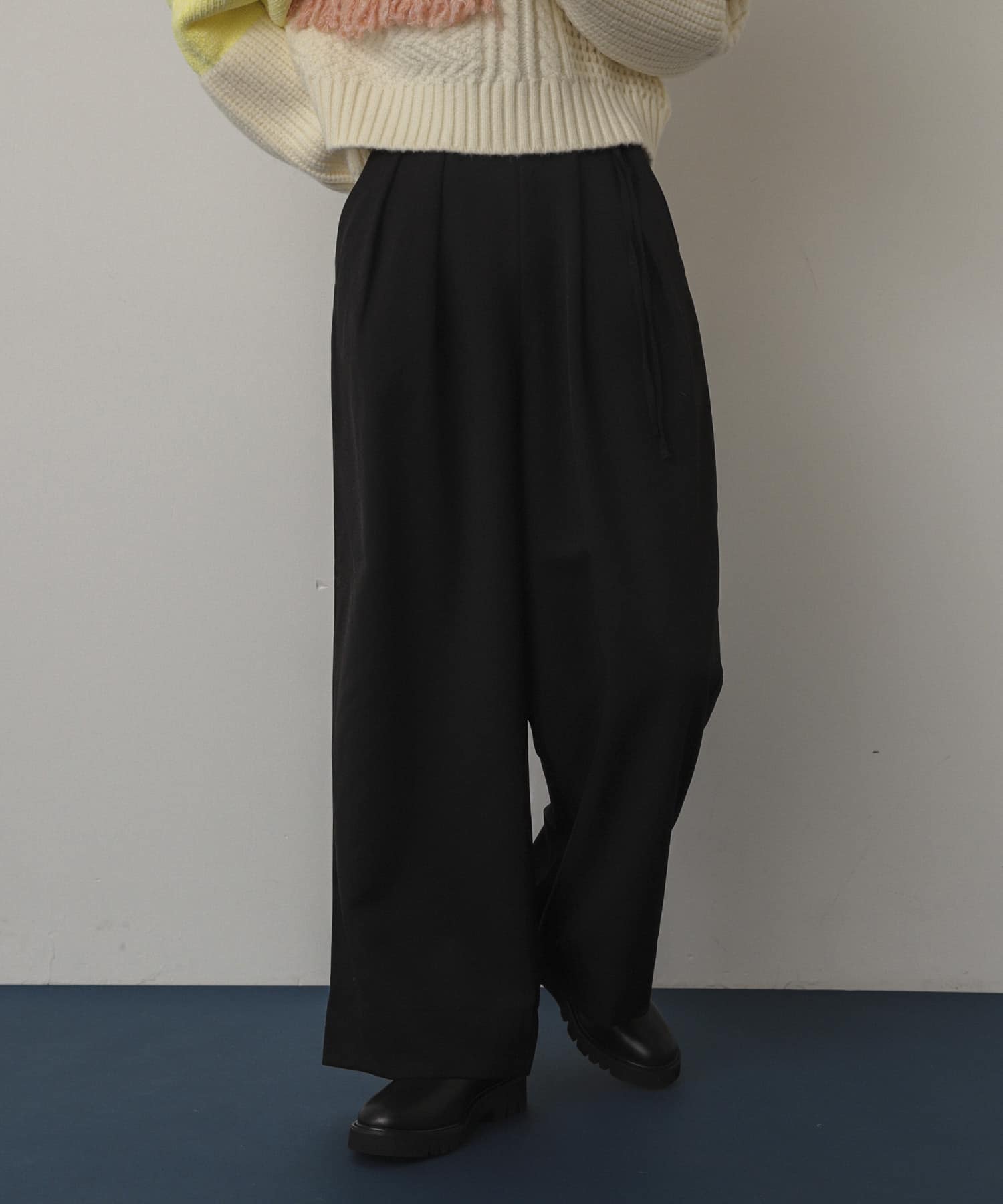 ダブルベルトスラックスワイドパンツ