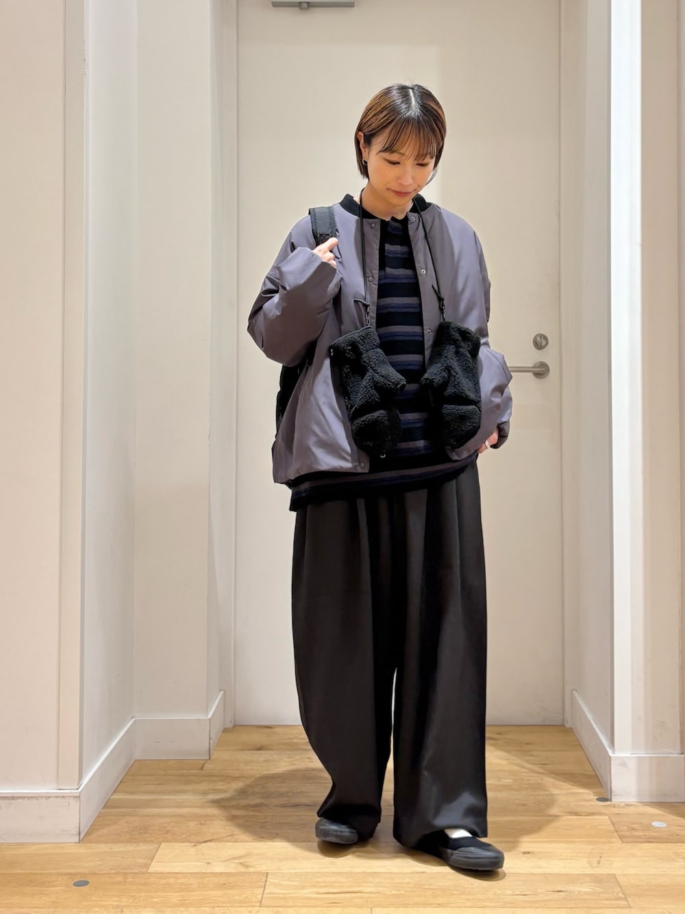 滑らかな生地感で、上品な印象を与えてくれるのでキレイめなコーディネートにもマッチしますよ◎