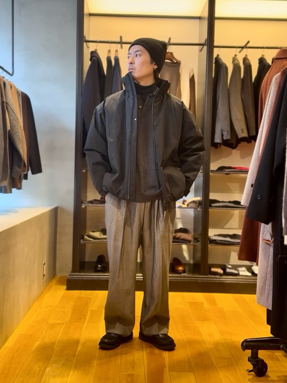 程よくルーズで袖口にゴムがあるので