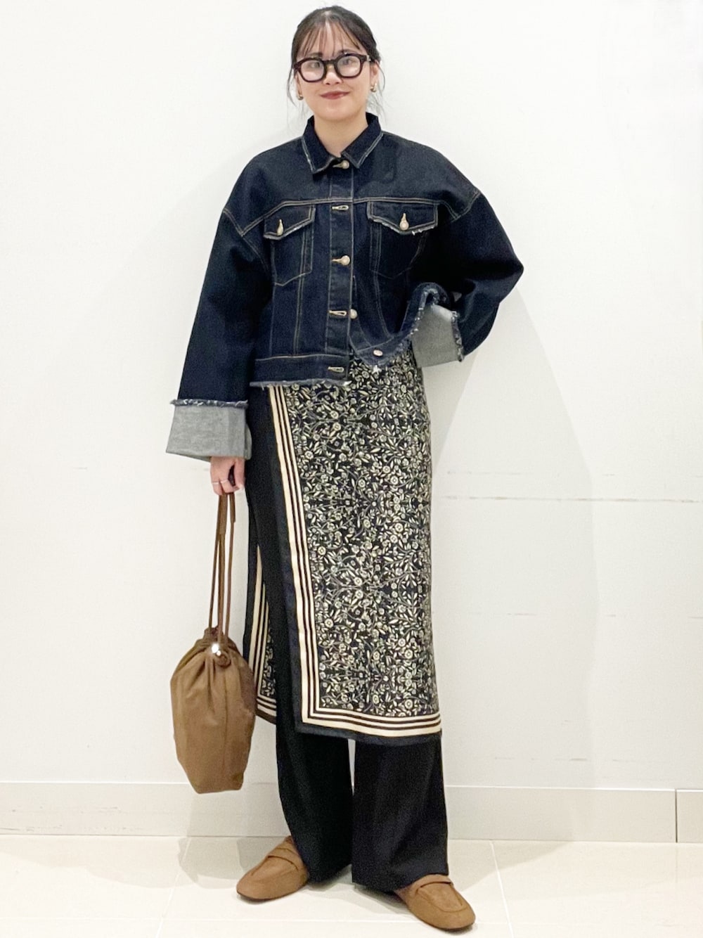 トップスはベージュで統一させて足を長く見せるように細身のパンツで合わせてみました!