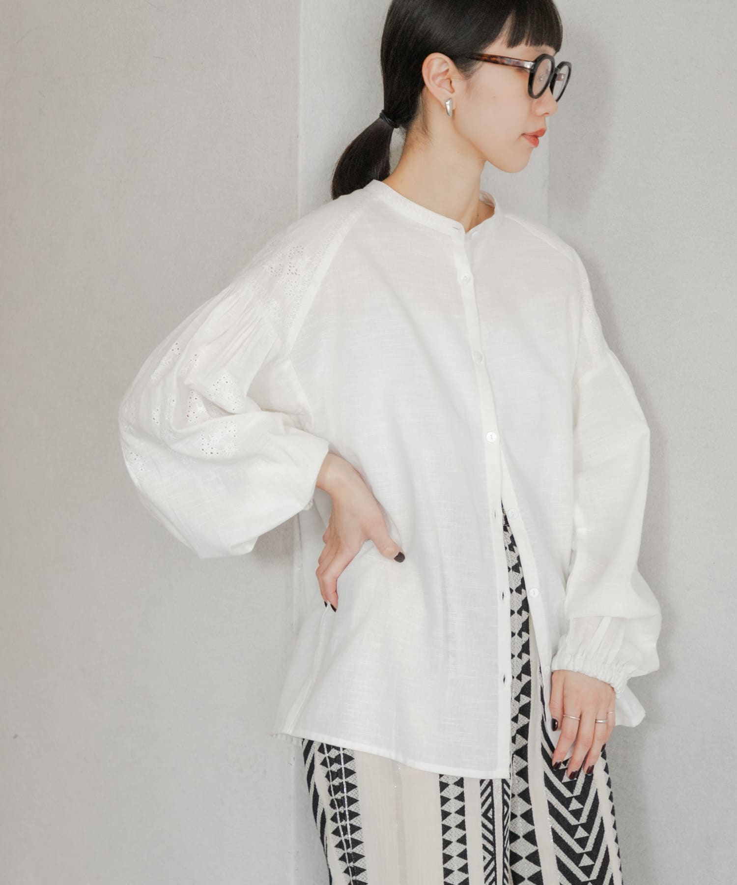 刺繍ボリュームスリーブブラウス