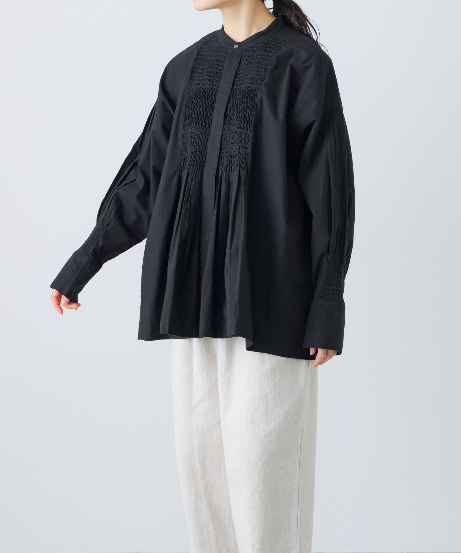 かぐれのブラウスは、ひだをとって糸でかがることで模様を作る「スモッキング技法」を用いたブラウスになっています!シンプルなボトムに合わせて、さらっと着るだけでスタイリングが決まります◎長いシーズンきていただけると思います!シンプルながらも存在感があり、コーディネート幅が広がると思います🫶🏼