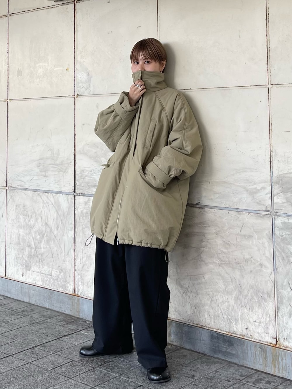 シアージャガードワイドパンツに2WAYフリルノースリーブトップスを合わせて、綺麗めカジュアルなスタイルにしてみました。
