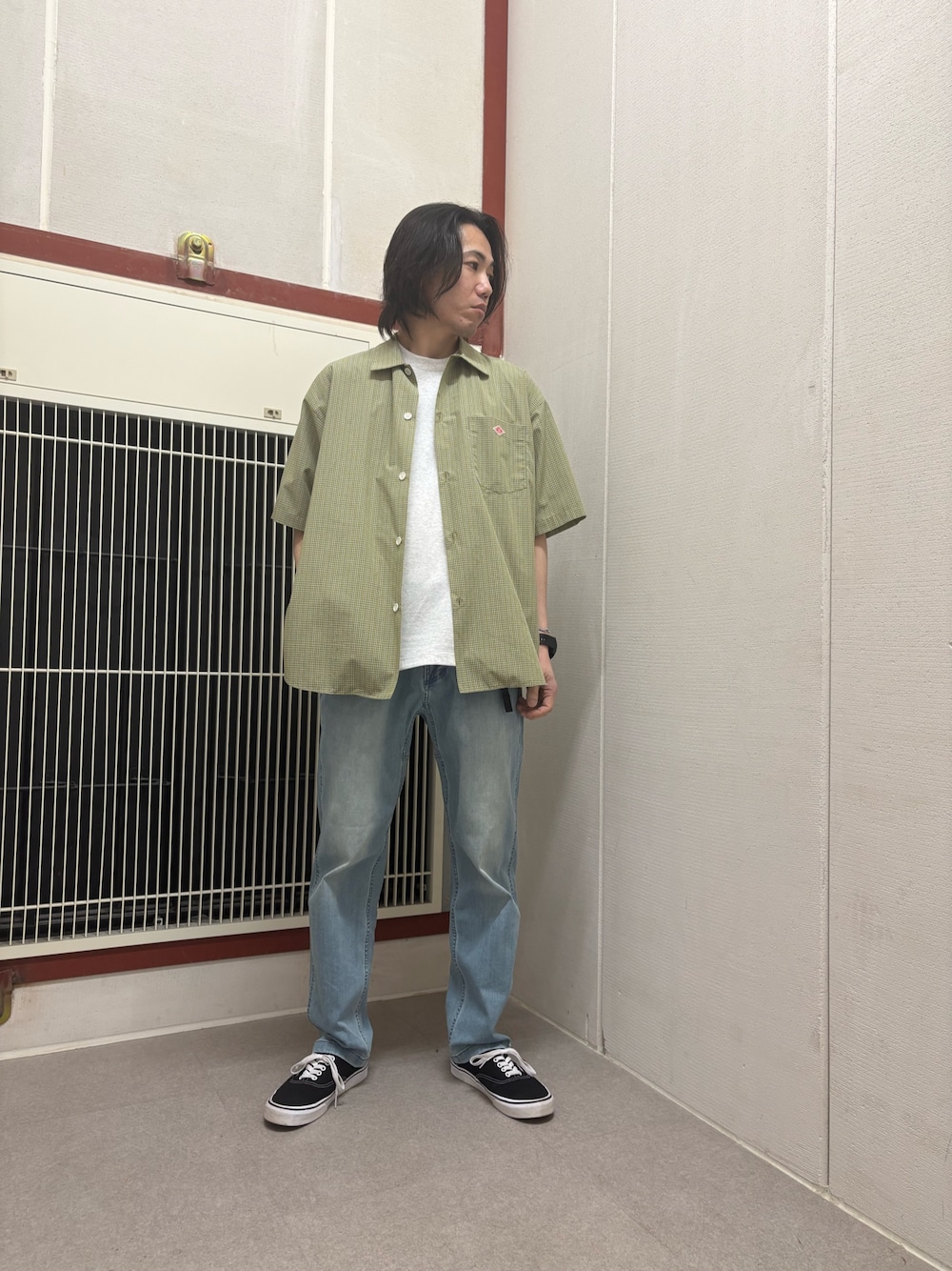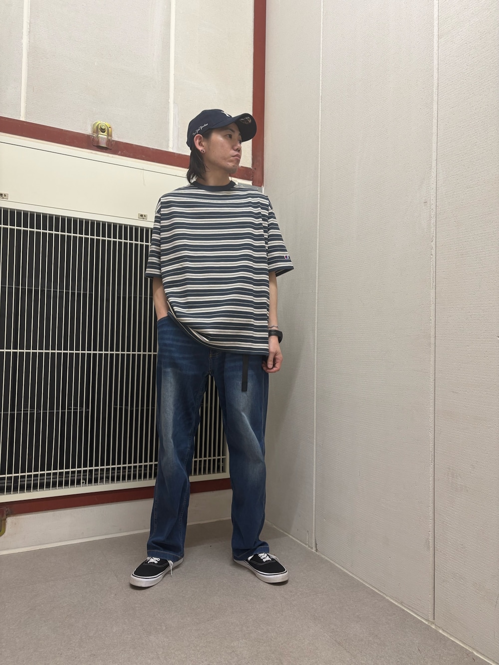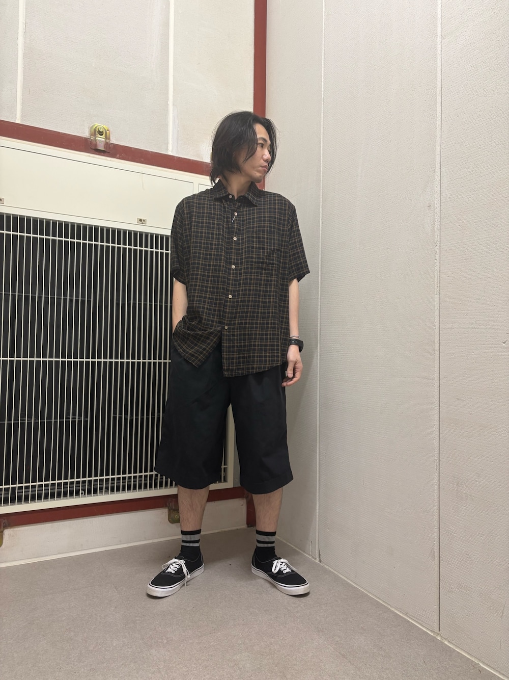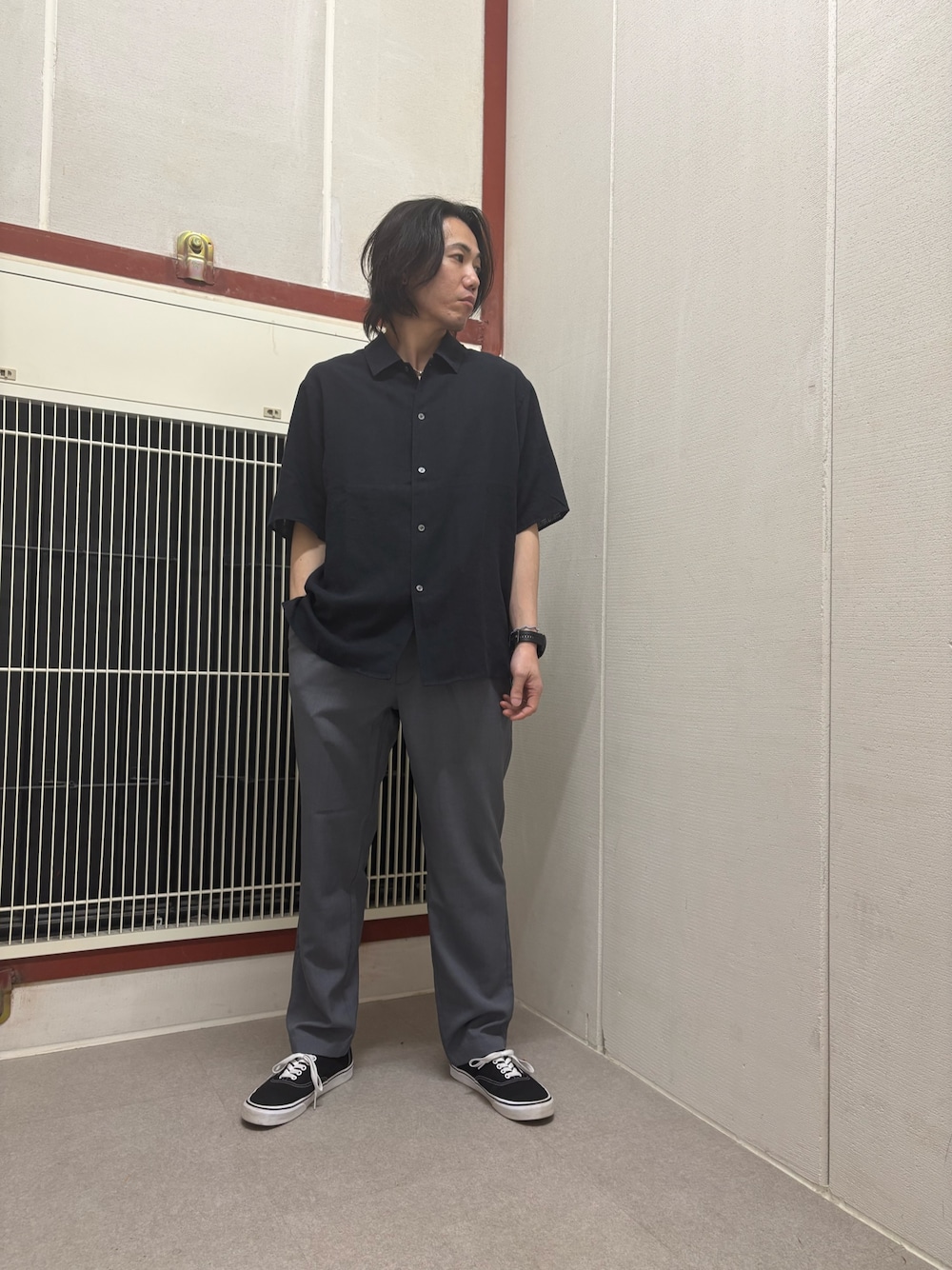 リネンのゆったり着心地の良いブラウスに、接触冷感がついていて夏におすすめのパンツを合わせました。
