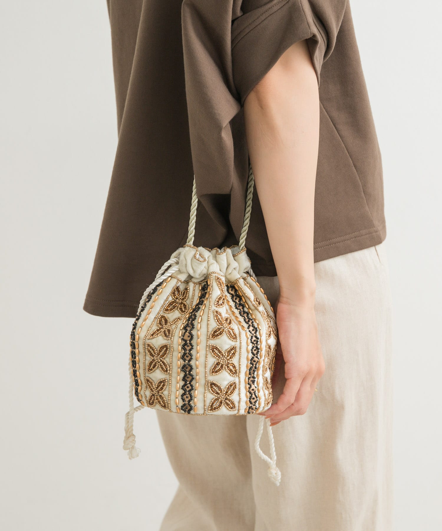 インドビーズ巾着バッグ