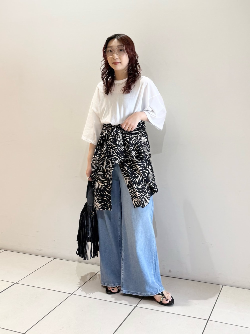 オーバーサイズなので、前を開けて羽織りにするとスッキリした印象になりました◎