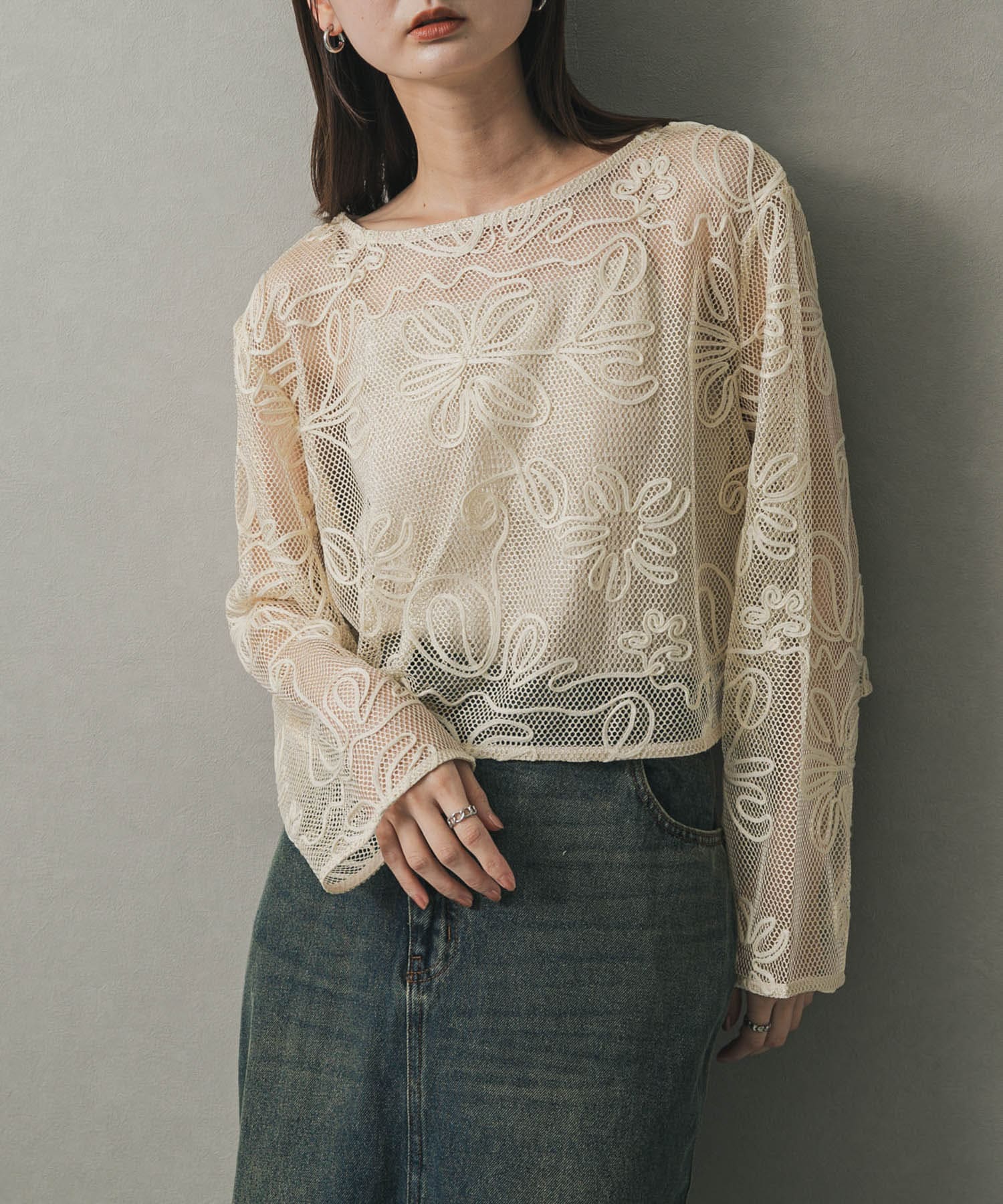 こちらのトップスはメッシュ素材になっているため、今から活躍する一枚です!