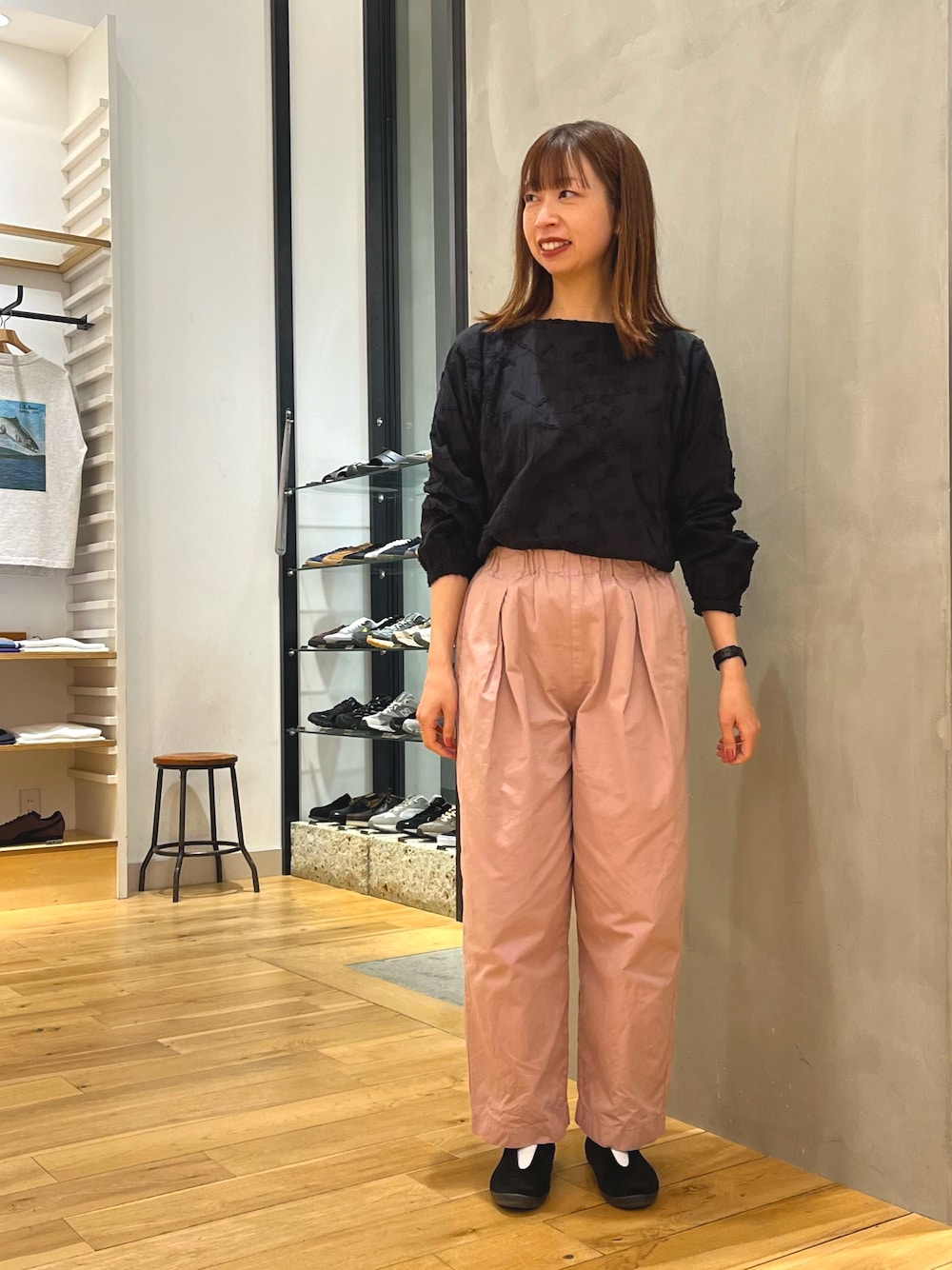 ぺたんこのシューズのときはウエスト折って履けなくはないですが、その場合はドローコードが表に出てくるので、ウエストに被さるようにトップスを合わせていただくのが個人的にはおすすめです!
