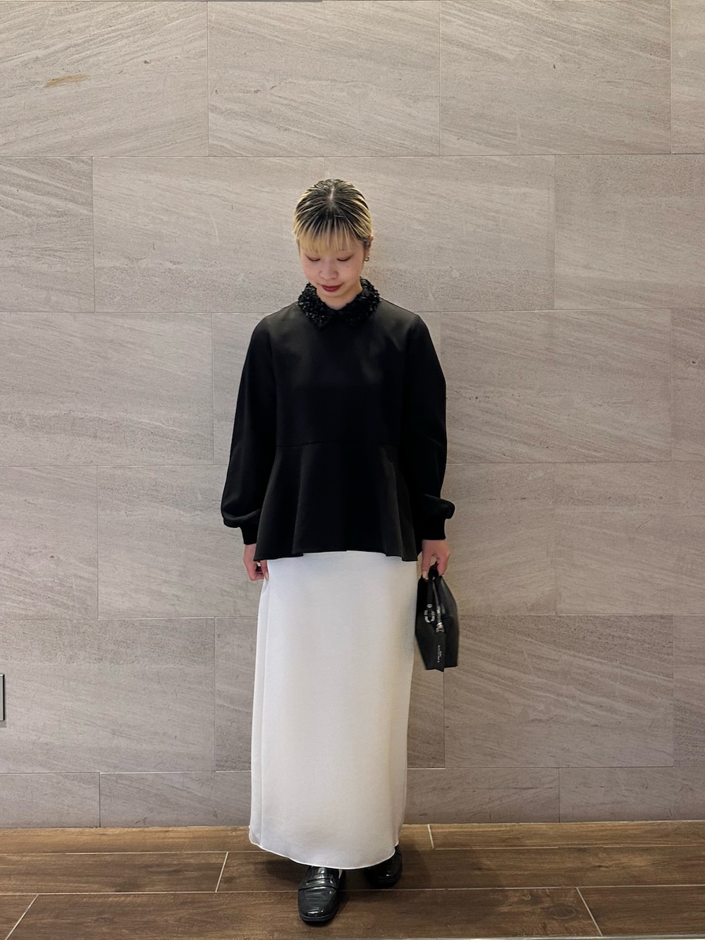 深すぎないVネックは顔まわりをスッキリ見せてくれます◎