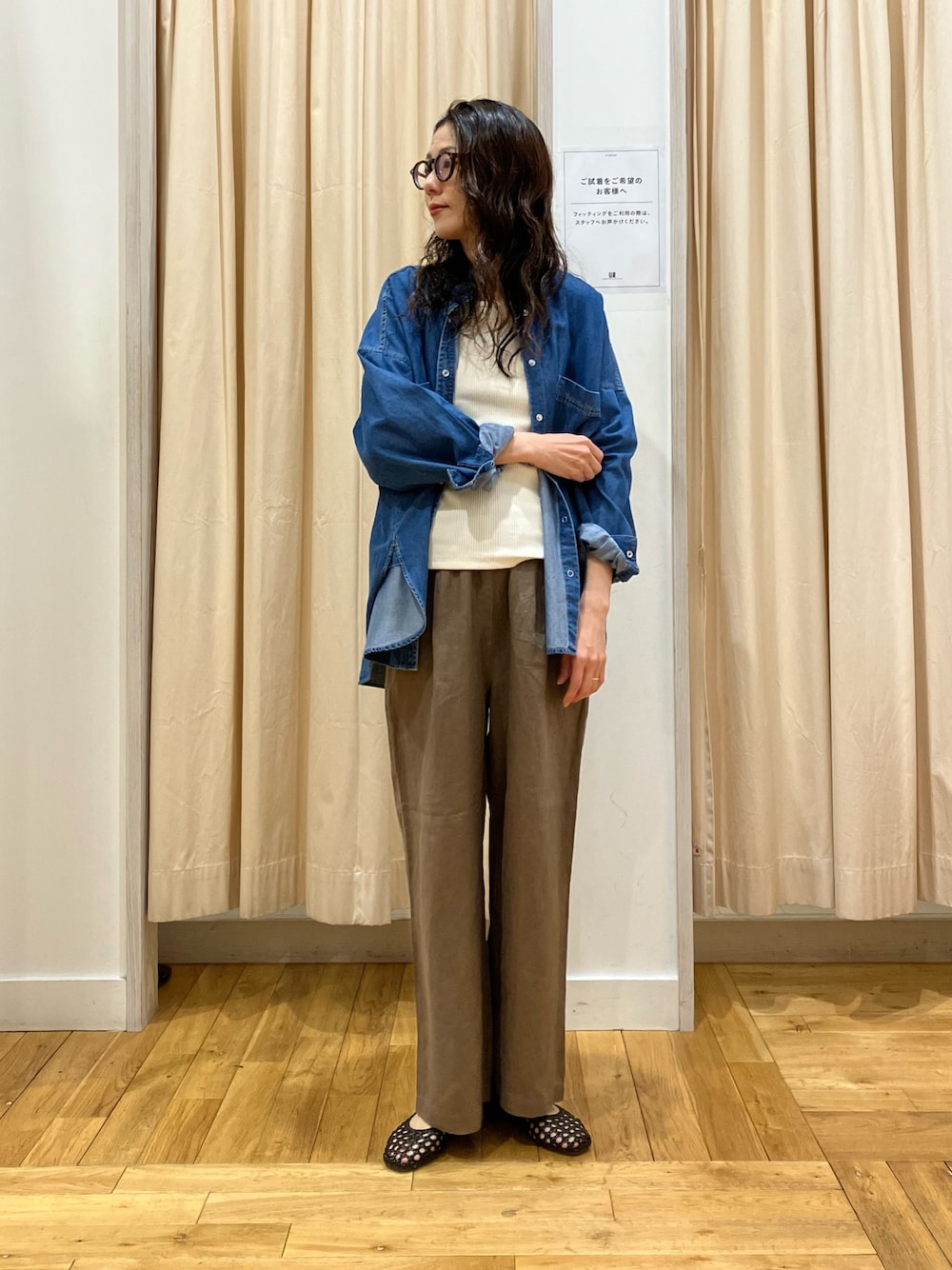 Lee別注ワイドデニムはMサイズでウエストも丈もジャストです!たっぷりワイドなシルエットがお気に入り。