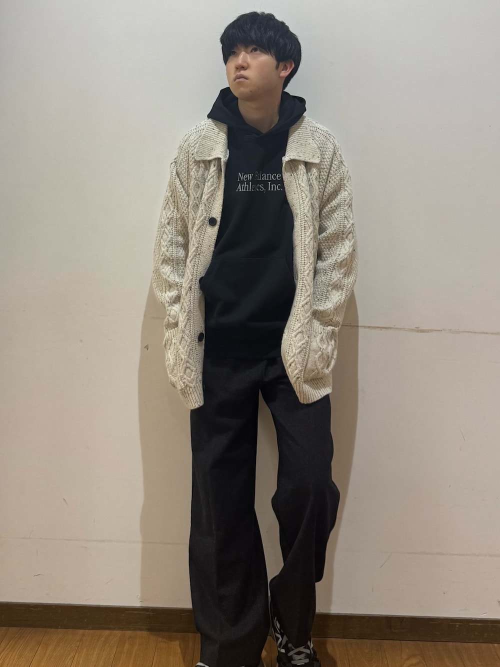 ノーカラーでカジュアルになり過ぎずゆったりしたサイズ感なので、インナーが少し厚手になっても◎
