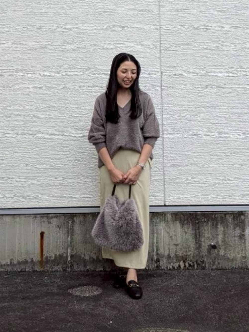 グレー✖️ブラックのみワンピースがフェイクレザー。