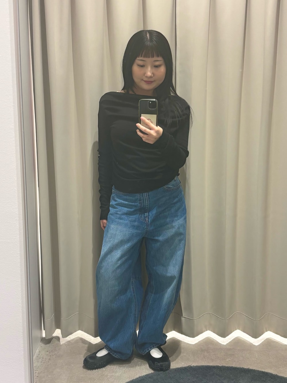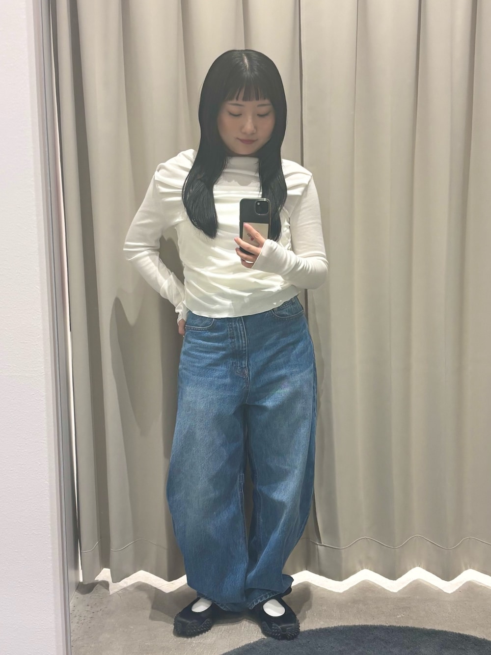 デニムもワイドめな作りになってるので腰周り、足のラインが出るのがあまり好きではない方でも履きやすいです!