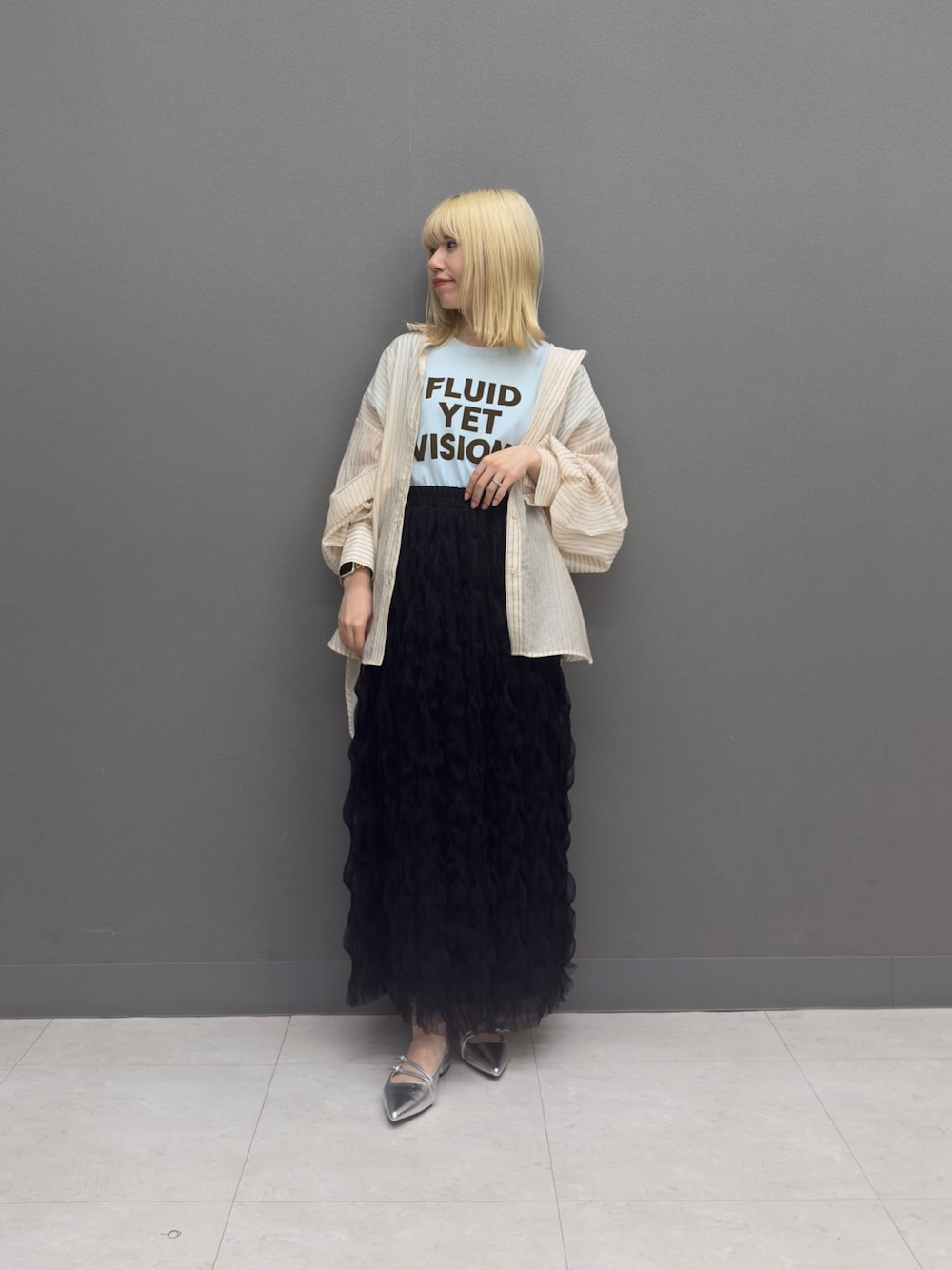 夏のワンピースですが、暗めカラーのチャコールは小物次第で秋にも着ていただけます◎