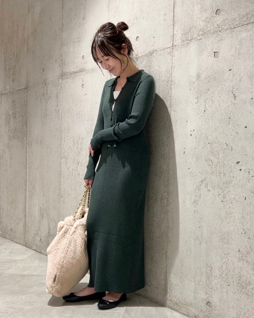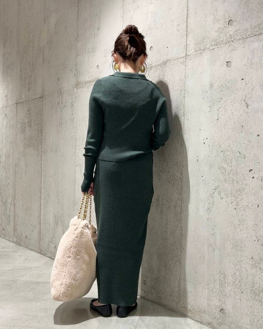 女性らしい、スッキリとした細身のシルエットながらも、伸縮性のあるリブ生地で締め付けのないストレスフリーな着心地。