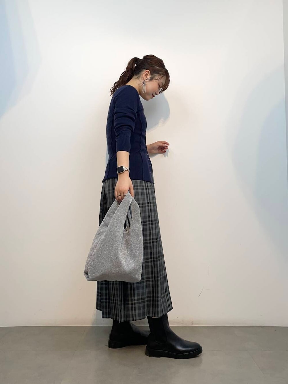 秋に着たくなるチェックスカートに大人気Vネックカーディガンを合わせてみました!