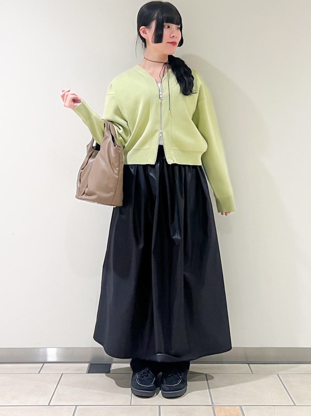 淡いカラーで合わせたので小物で黒を入れてみました^^