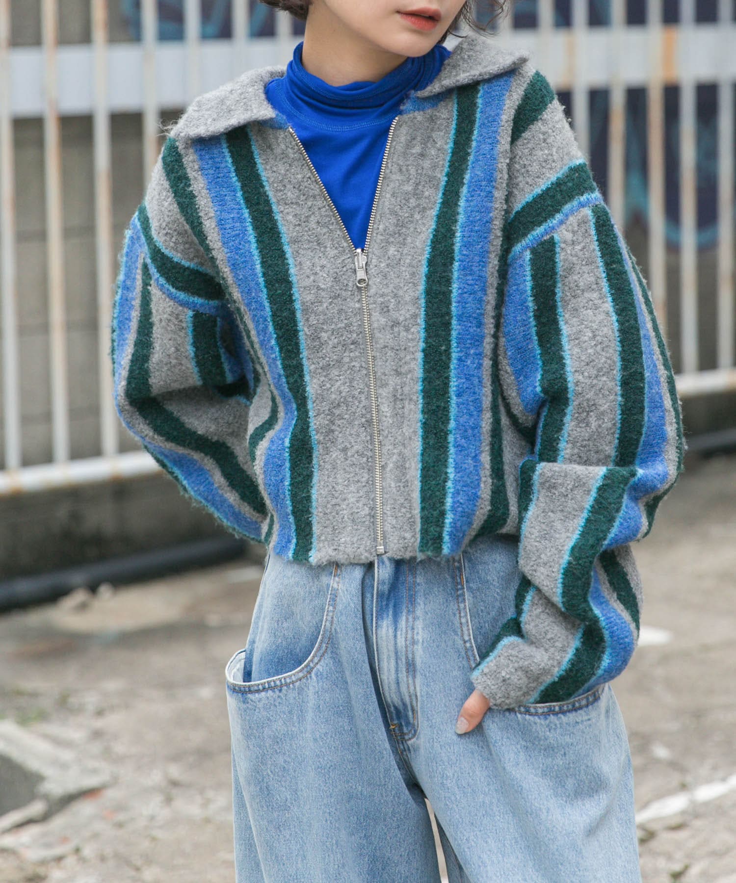 フロントZIPストライプカーディガン