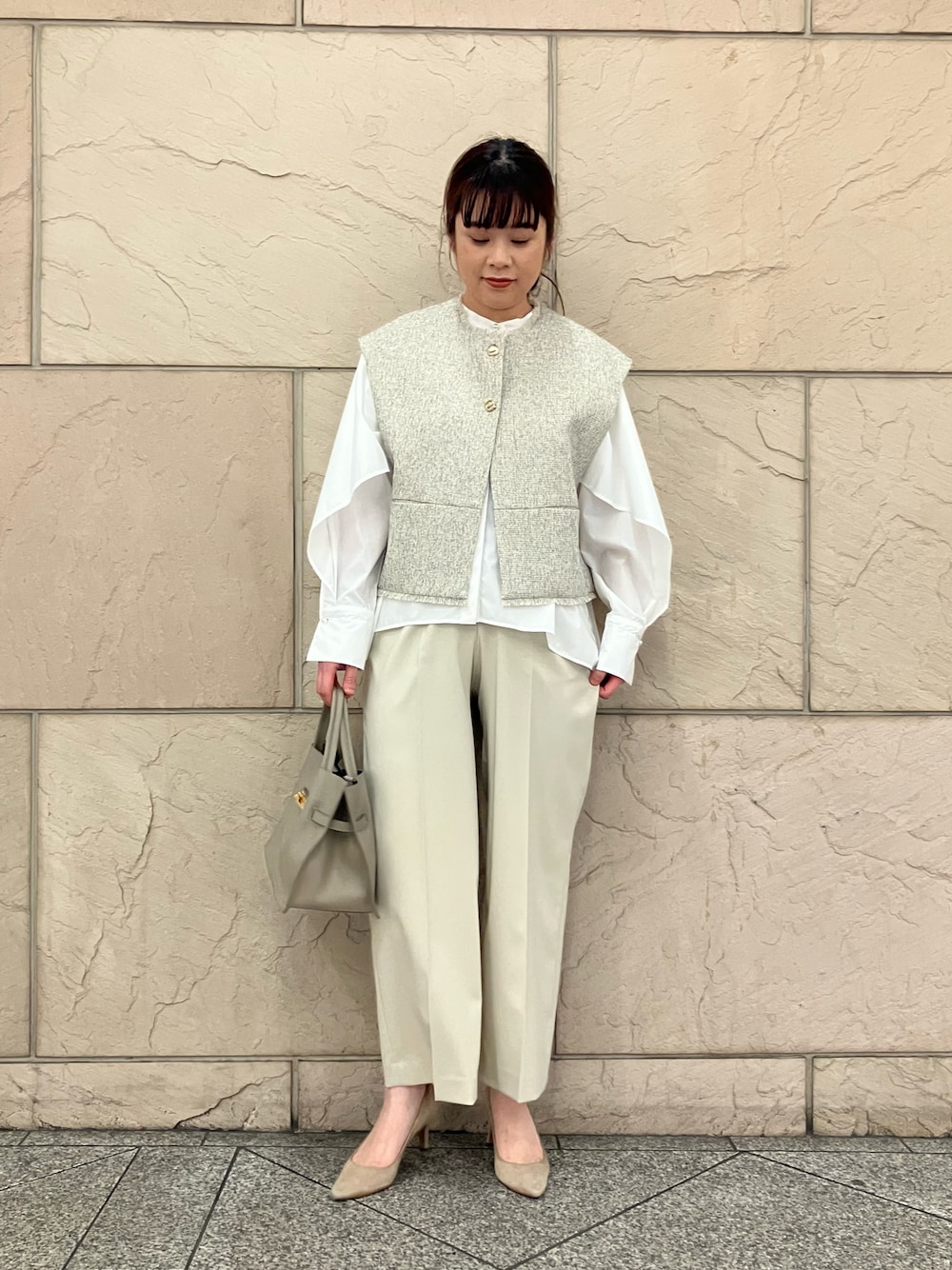 パンツやプリーツスカート等レイヤードスタイルもおすすめです。