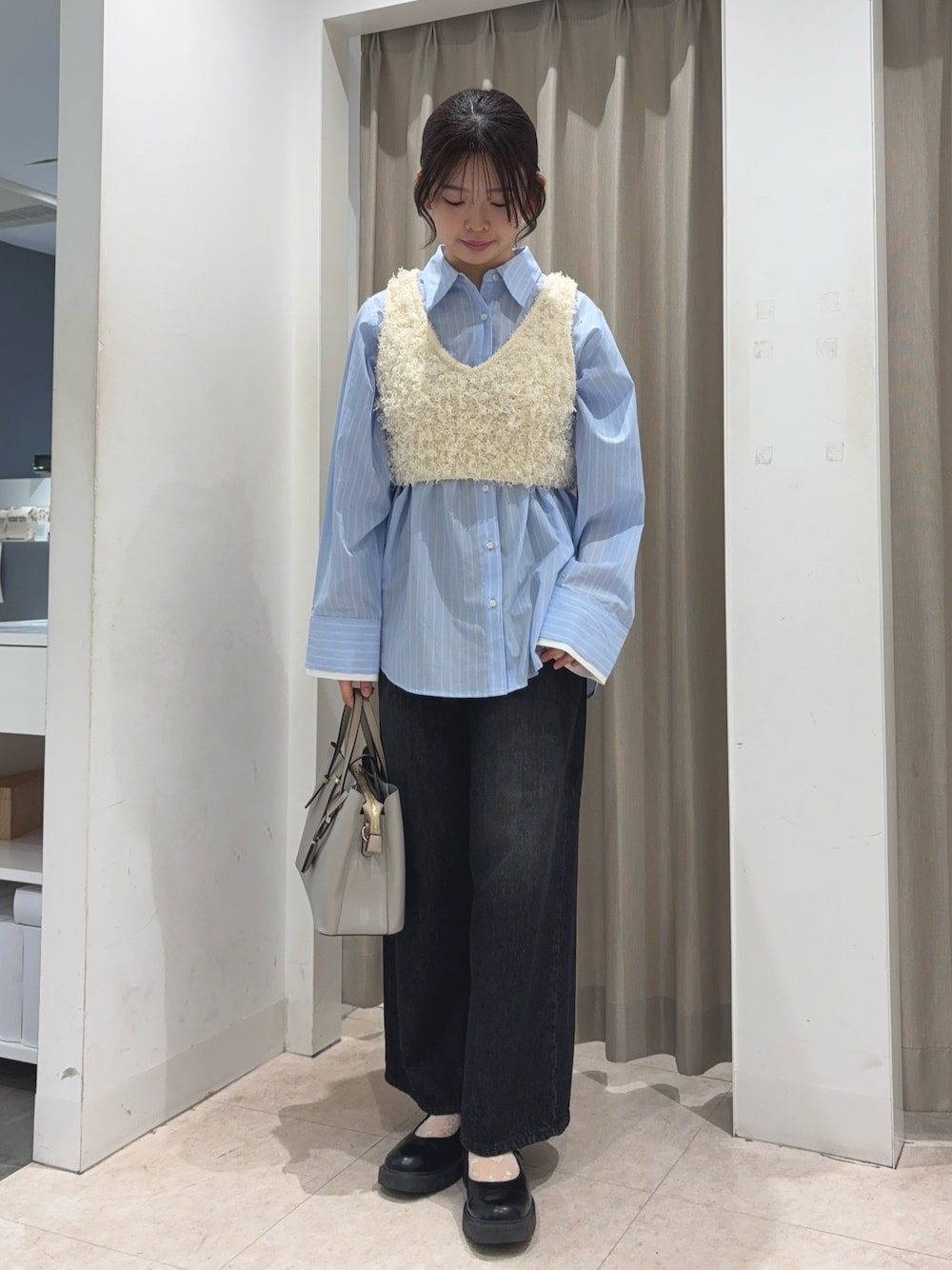 もこもこのフェザー素材のトップスは軽い着心地で、秋冬に映えること間違いなしです♡