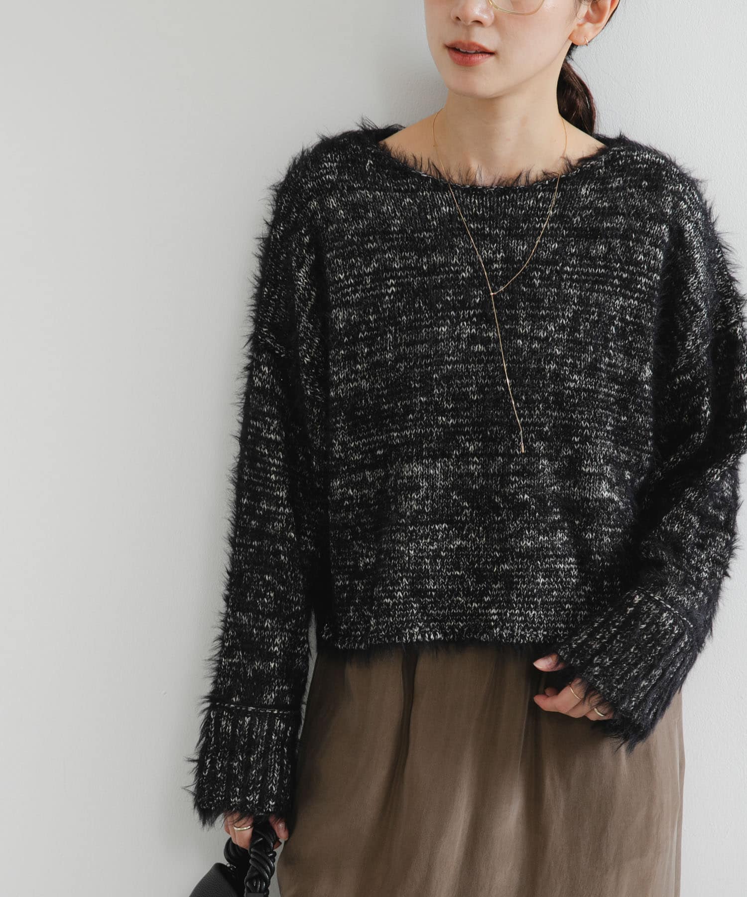 シャギーニットのラフなサイズ感とふわふわな肌触りがとってもオススメです◎