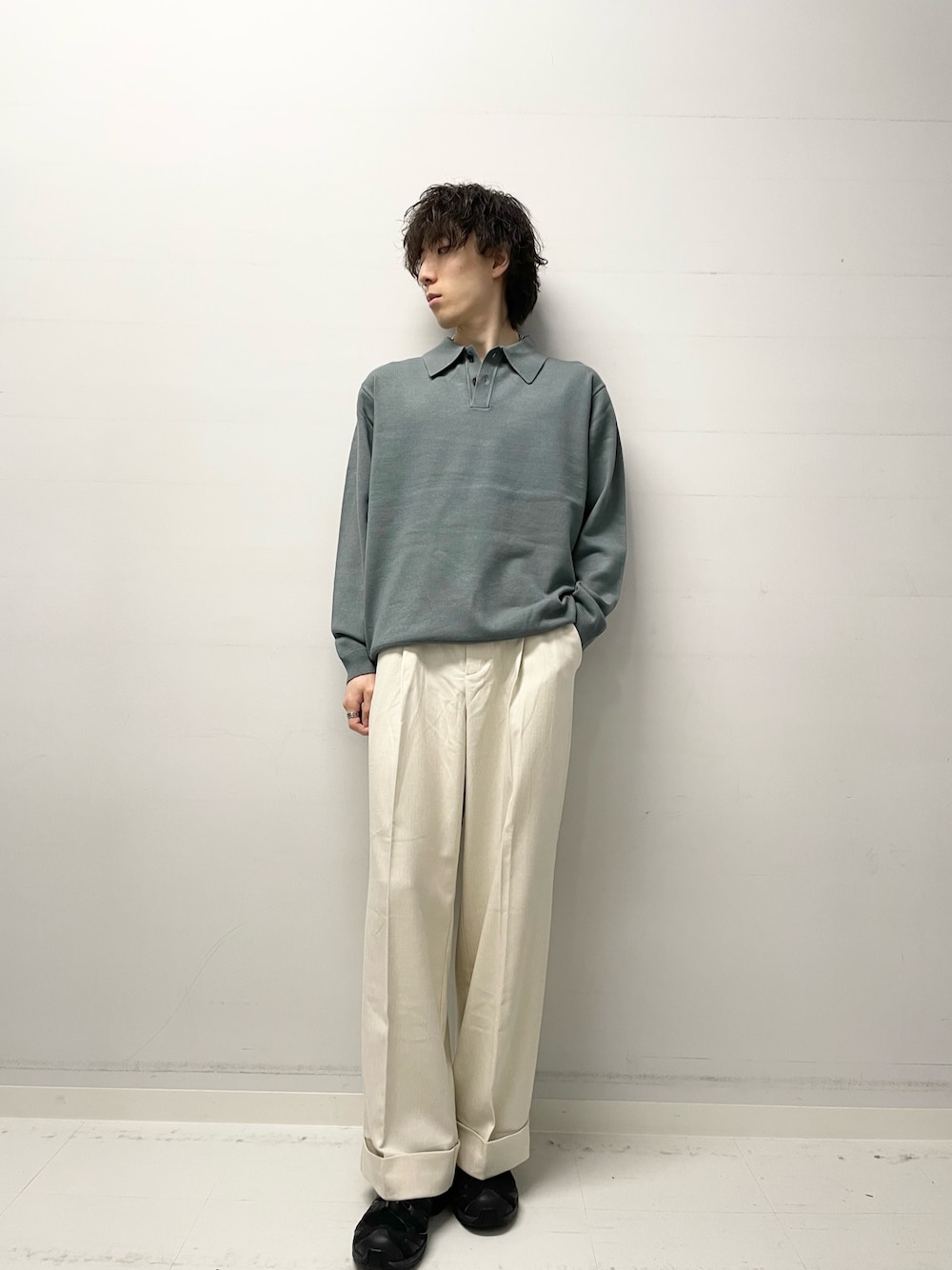 ボトムスはストレートパンツに近いシルエットで、キレイめもカジュアルも合わせやすくなってます!