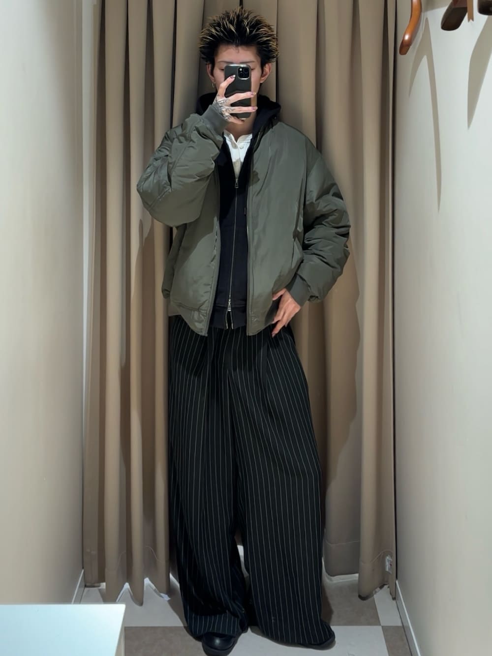 ボーイッシュなデニム等でバランス取るのが好きなたかやまですが、デニムが極太ルーズな感じでカジュアルになりすぎちゃうので、インナーにレースのワンピースを挟んでみました◎