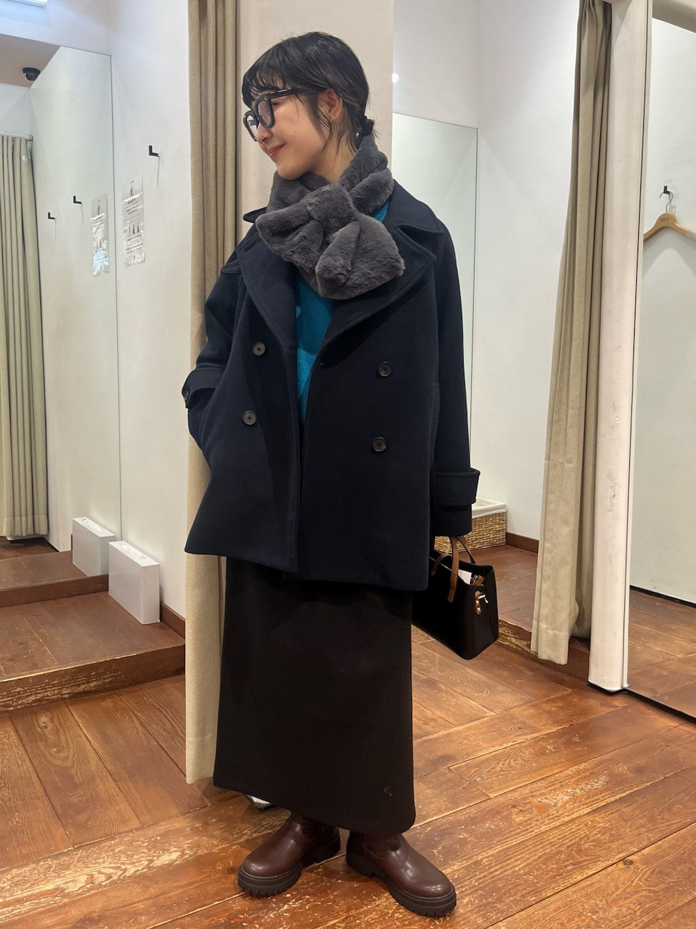当店で人気のカラーメランジシリーズのカーディガンバージョンを着用してみました。