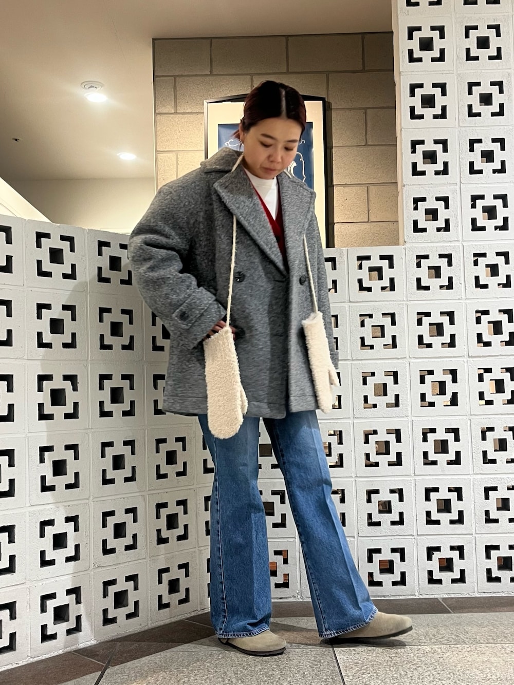 サイズ感はインナーにニットを着用して、ジャストサイズです。