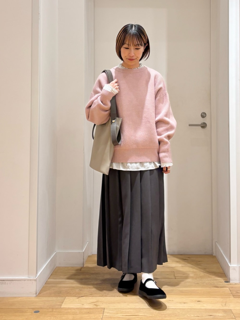 スカートは、落ち感のあるスッキリとしたシルエットなので、ゆったりなトップスと合わせてもバランス良く着用できます◎
