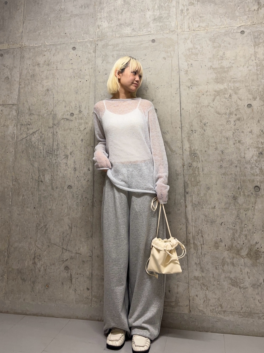 スウェットはレースアップデザインなのでカジュアルになりすぎず◎