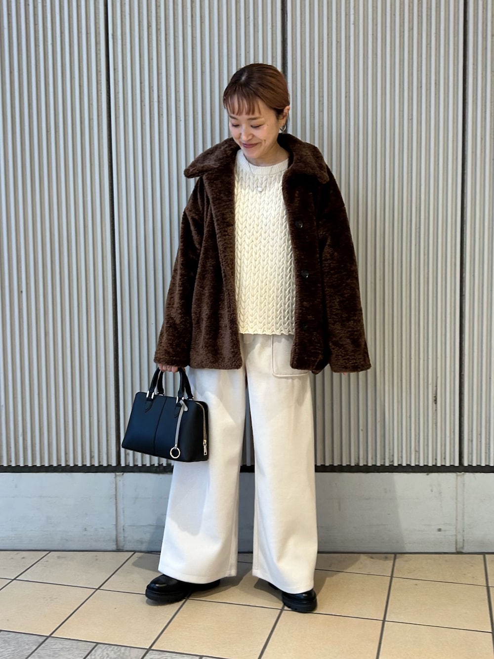 コートを脱ぐと大人っぽく、コートを羽織るとグレーの色味で遊べるコーデです
